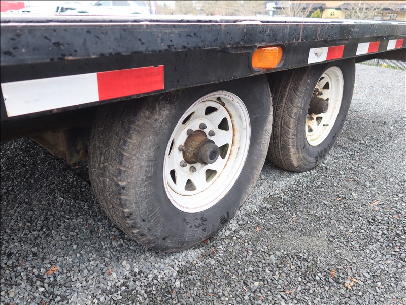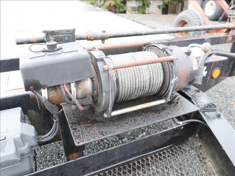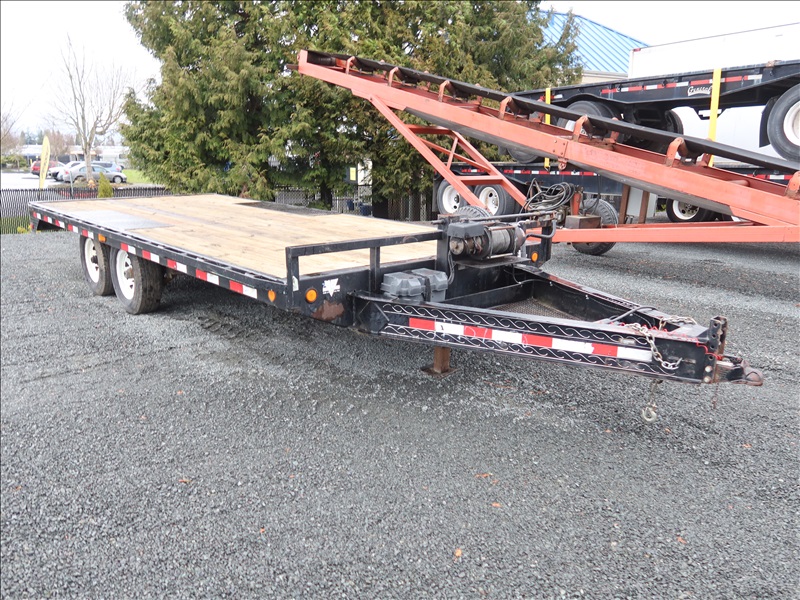 T/A, 18' X 7'7" FLATBED EQUIPMENT TRAILER, SPRING SUSPENSION, RAMPS, WINCH, ELECT BRAKES, 245/75R16