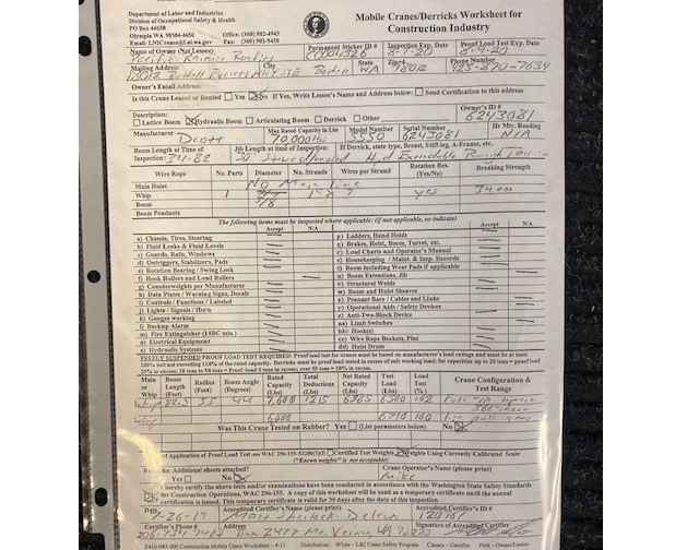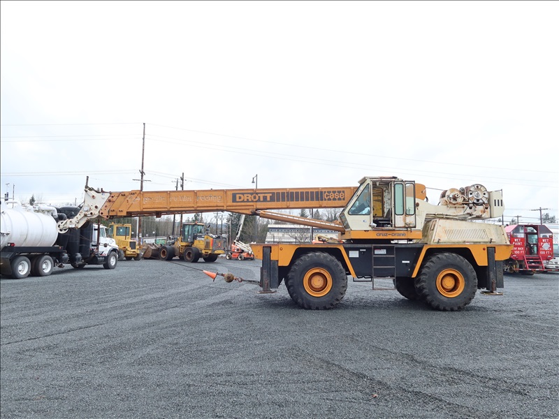 35-TON ROUGH TERRAIN CRANE, 34' - 82' 4-SECTION BOOM, 30' JIB, ANTI TWO-BLOCK, HEADACHE BALL, AUX WINCH, 6 CYL DIESEL, 26.5X25 (*NO LINE ON MAIN WINCH)