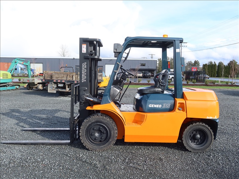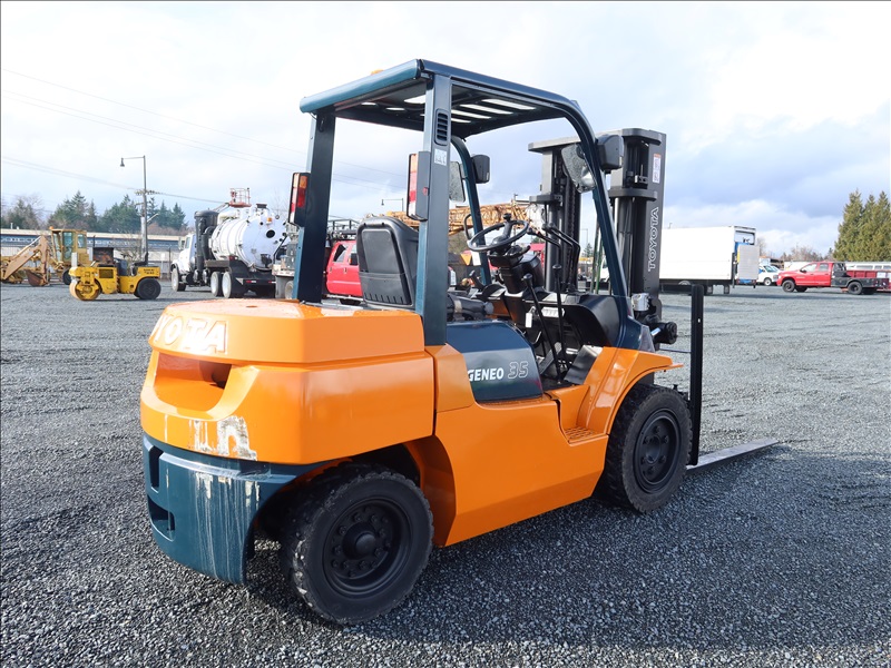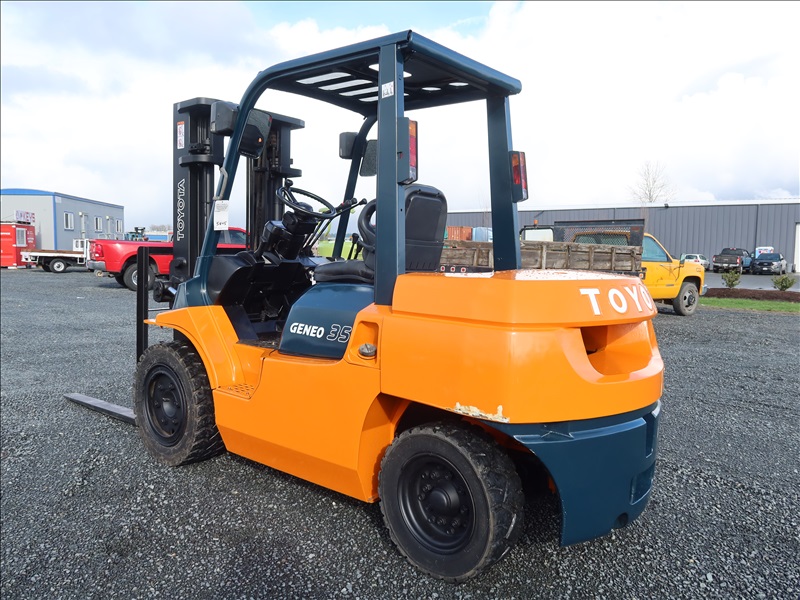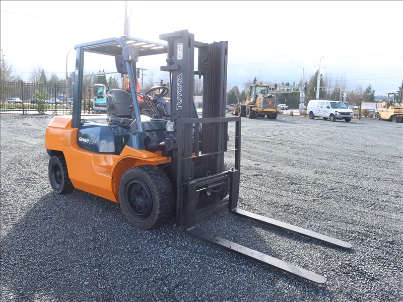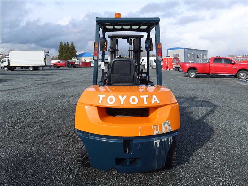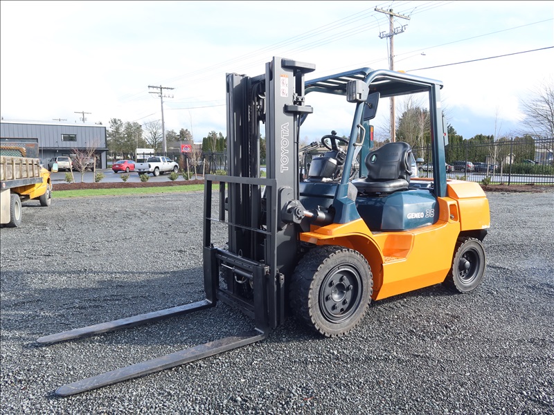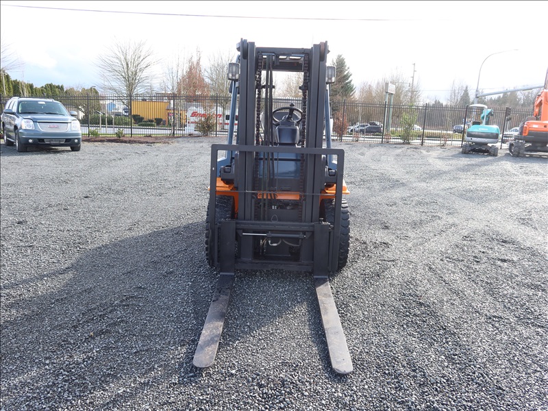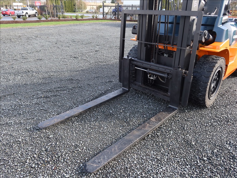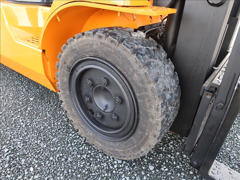 7,385 LB SOLID CUSHION TIRE FORKLIFT, 118" FORK HEIGHT, 2-STAGE MAST, SIDE SHIFT, 6 CYL DIESEL