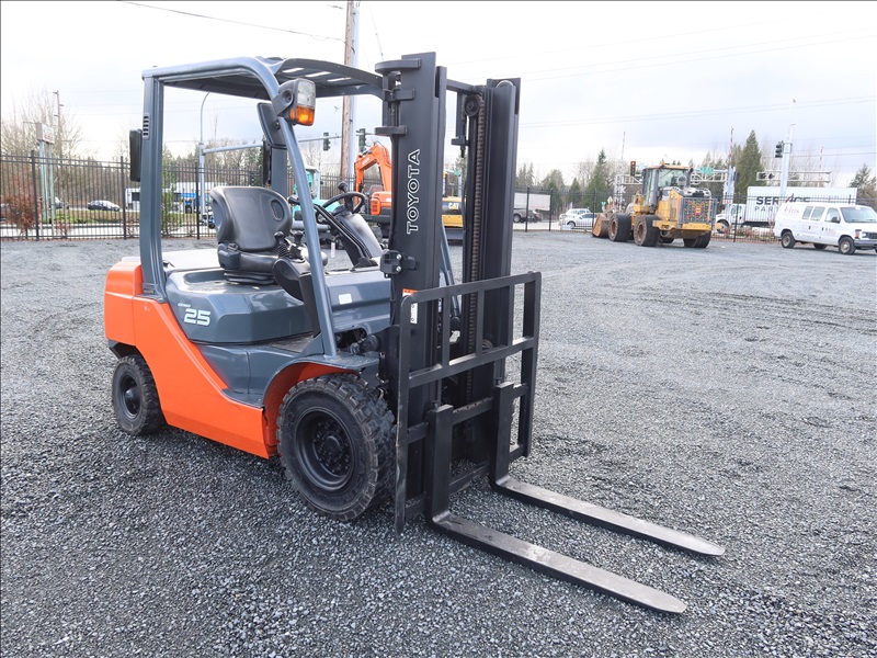 5,511 LB SOLID CUSHION TIRE FORKLIFT, 118" FORK HEIGHT, 2-STAGE MAST, SIDE SHIFT, 4 CYL DIESEL