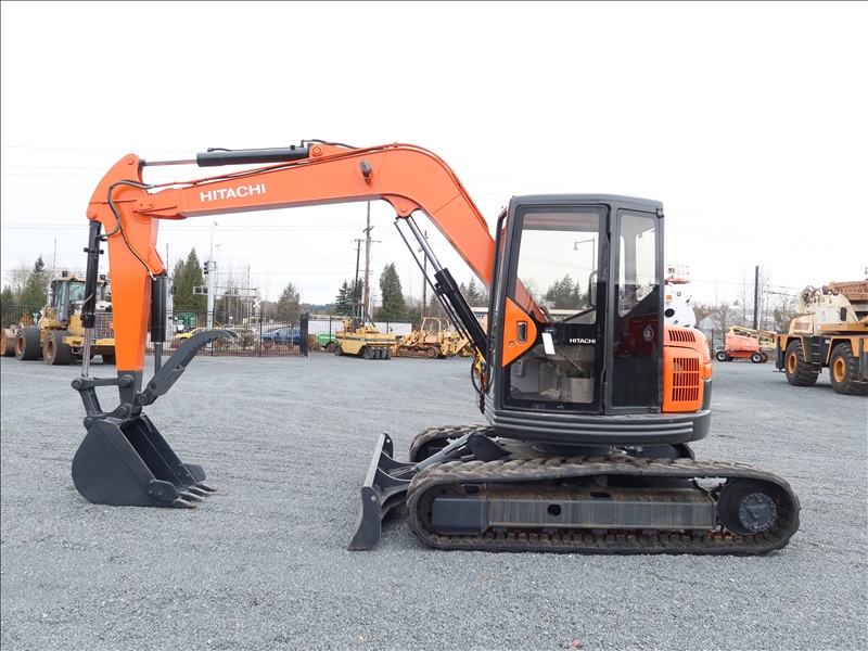 HYDRAULIC EXCAVATOR, NISSAN 4 CYL DIESEL, 72" STICK, 26" BUCKET, BLADE, RUBBER TRACKS, CAB
