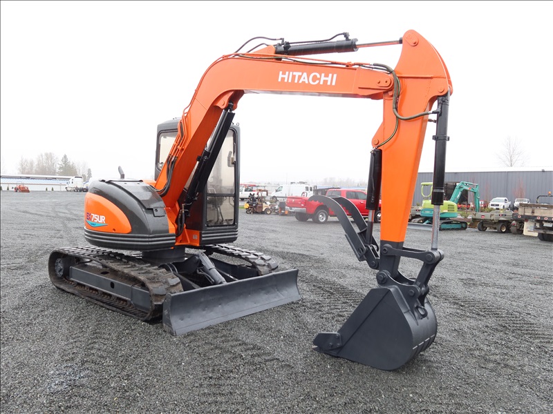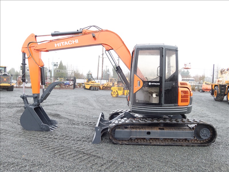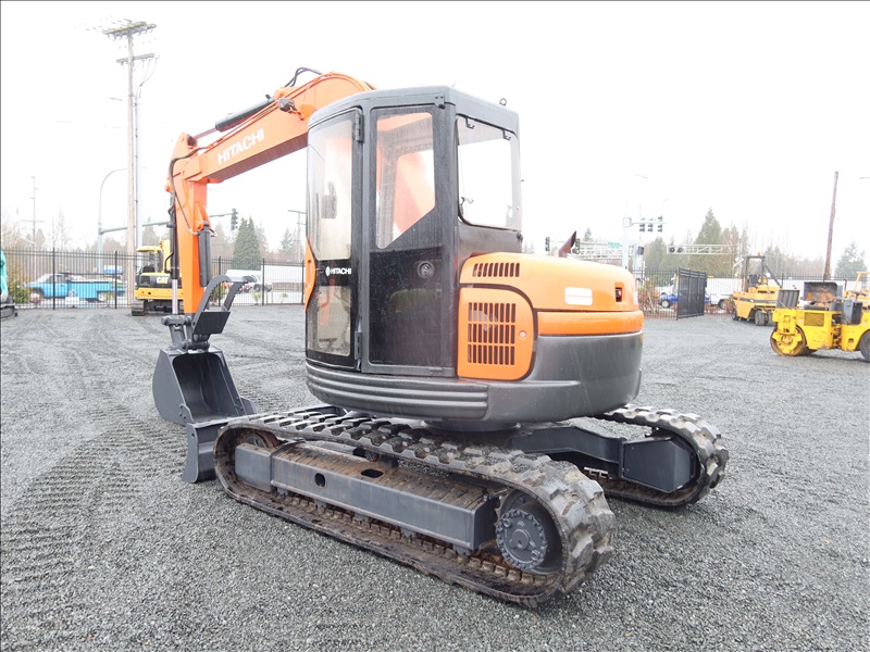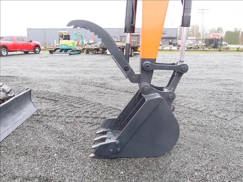 HYDRAULIC EXCAVATOR, NISSAN 4 CYL DIESEL, 71" STICK, 26" BUCKET, HYD THUMB, BLADE, RUBBER TRACKS, CAB