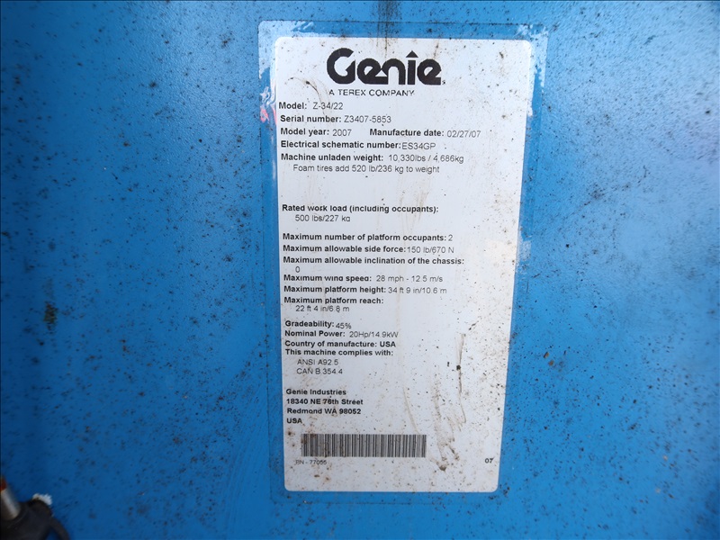 4X4 ARTICULATED BOOM LIFT, 34'9" PLATFORM HEIGHT, 22'4" REACH, 500 LB CAPACITY, KUBOTA DF752-EU1 LPG