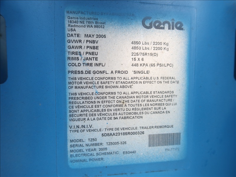 S/A, 55', 500 LB TRAILER MOUNTED BOOM LIFT, 24V, HONDA GAS ENGINE FOR CHARGING SYSTEM, 225/75R15