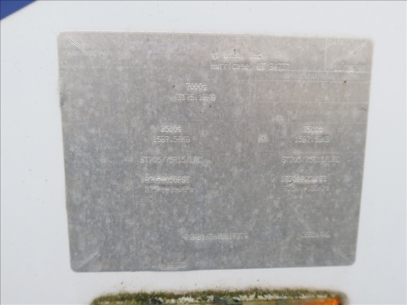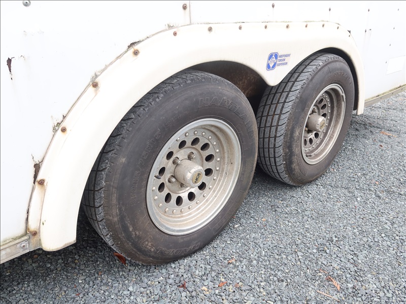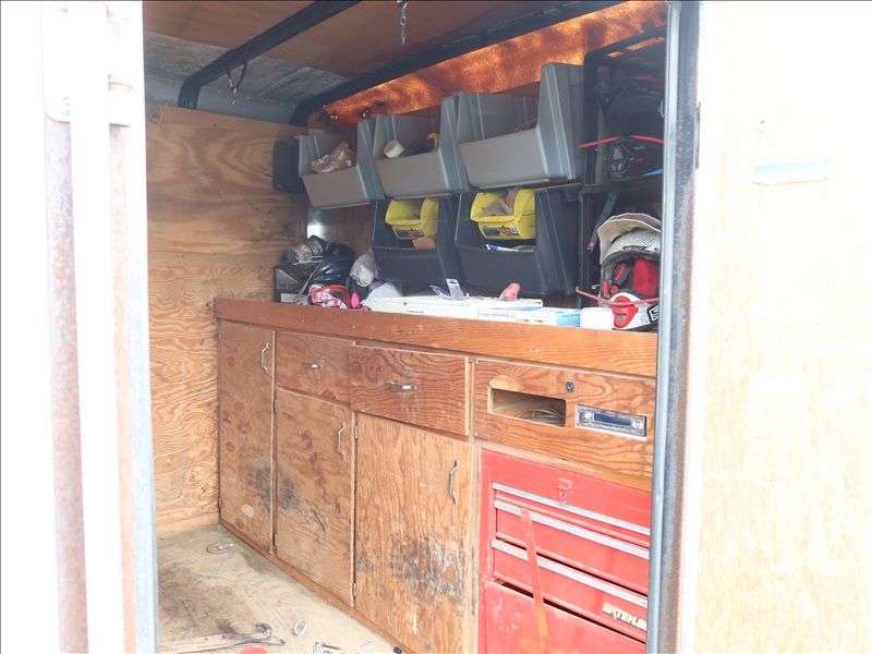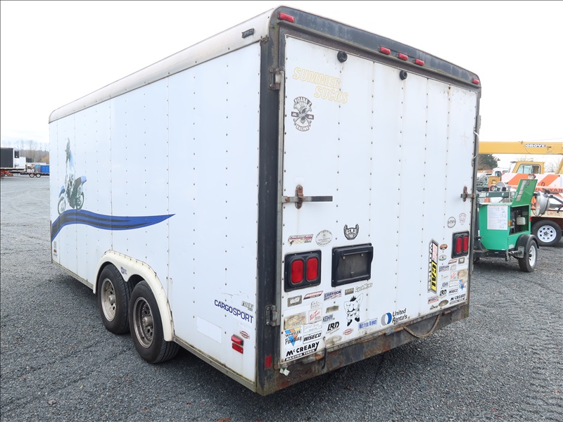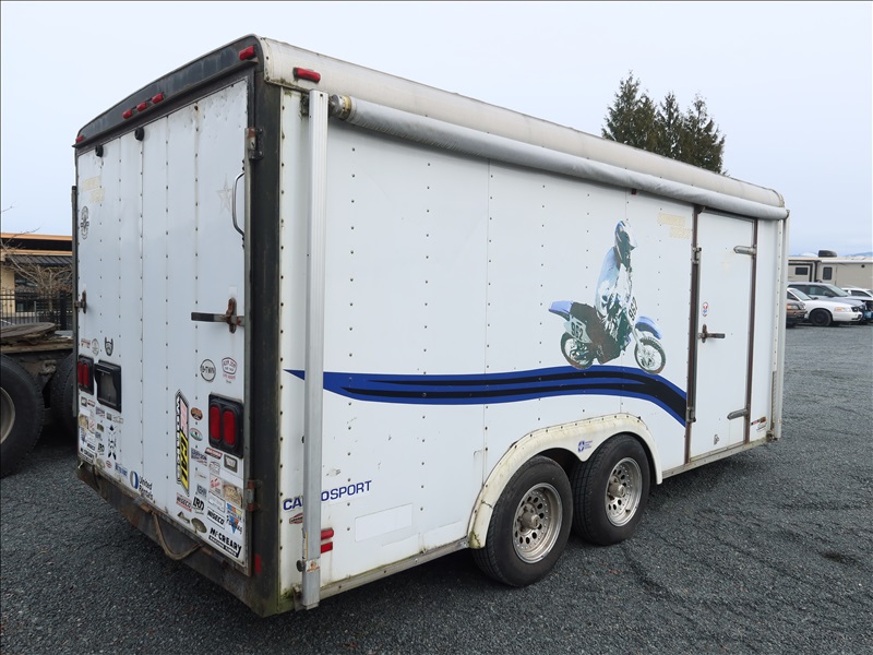 T/A, 16' X 8', 7,000 LB GVWR ENCLOSED TRAILER, TORSION SUSPENSION, SIDE DOOR, REAR RAMP DOOR, 14' AWNING, ELECT BRAKES, 205/75R15