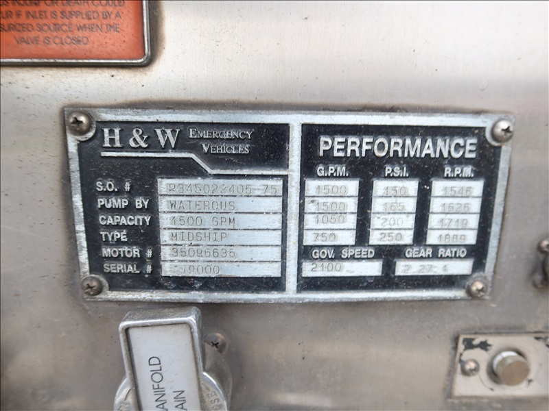 PUMPER TRUCK, 1,500 GAL, CUMMINS ISM, AUTO, A/B