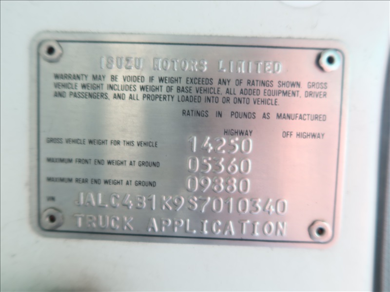 CABOVER, 14' VAN TRUCK, 135 HP ISUZU 4BD2, AUTO, 11.5' W/B, 5,360 LB FRONT, 9,880 LB REARS, 2WD (NO BATTERIES)