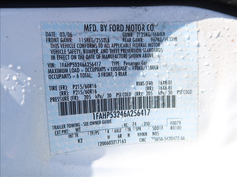 2006 FORD TAURUS 4DR SEDAN