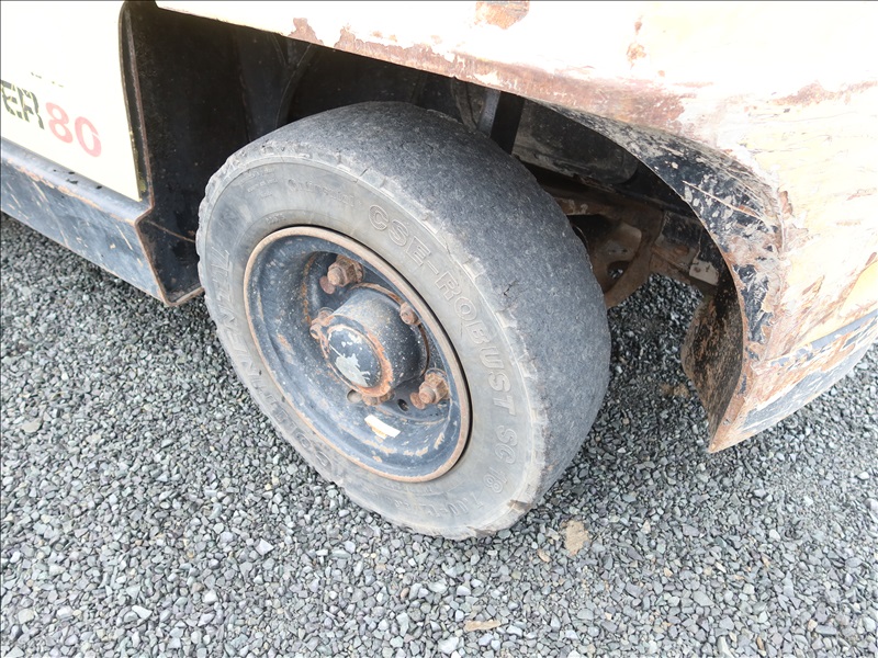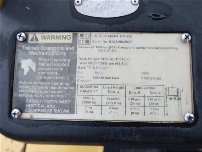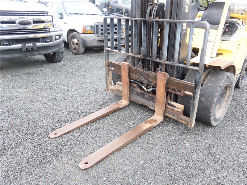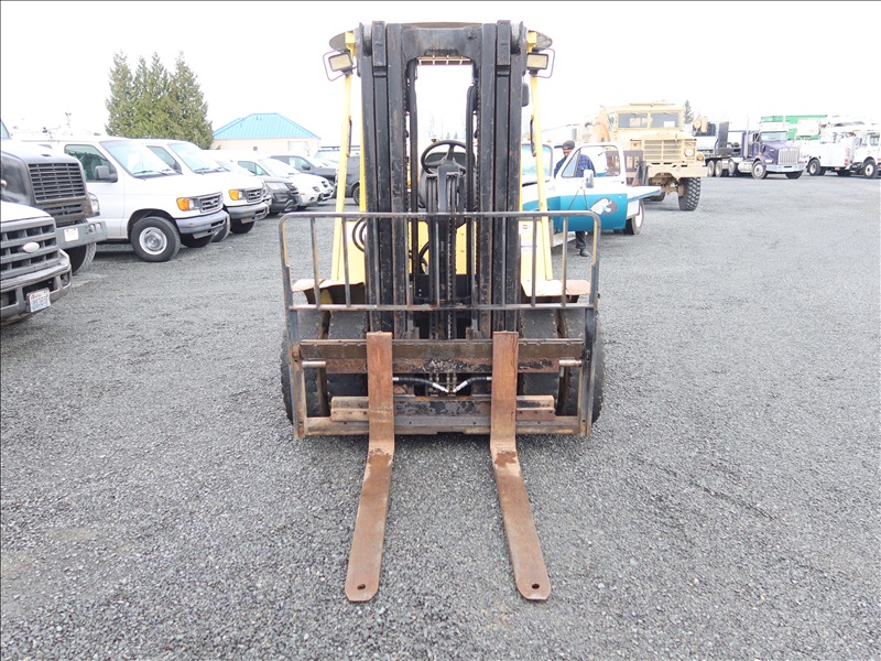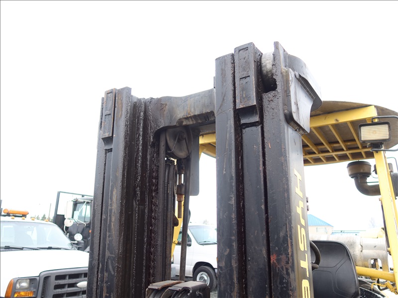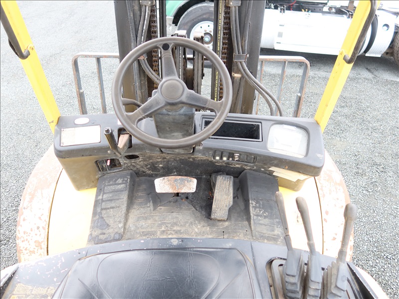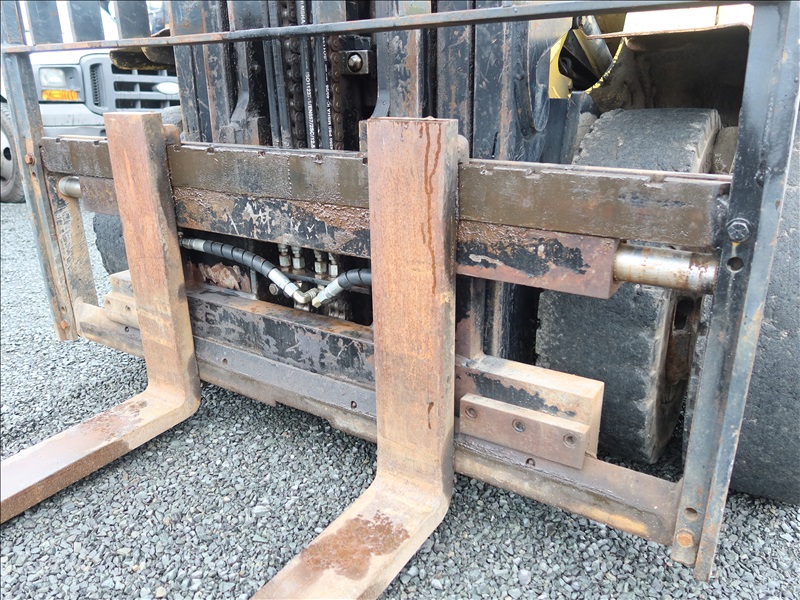 5,050 LB DUAL SOLID TIRE FORKLIFT, 173" FORK HEIGHT, 3-STAGE MAST, SIDE SHIFT, 6 CYL LPG