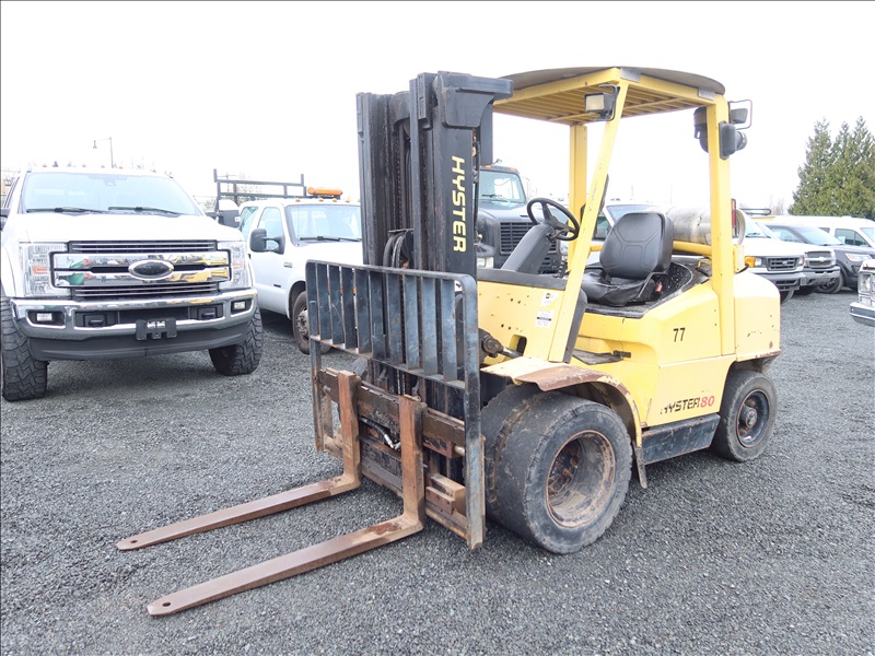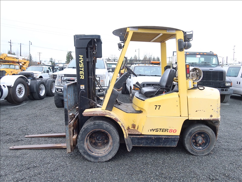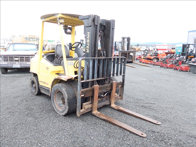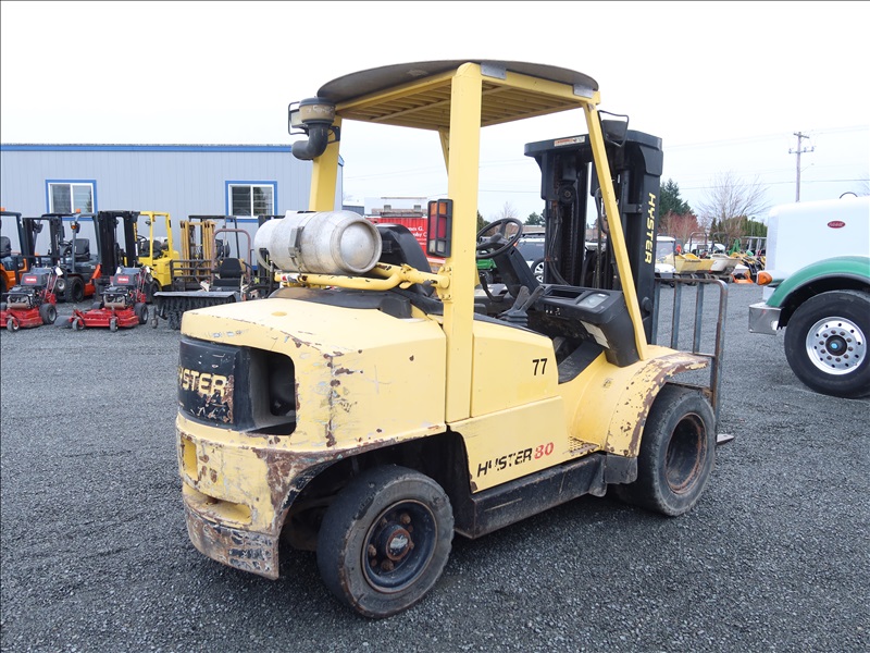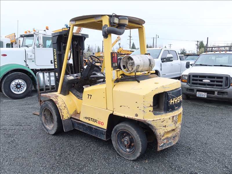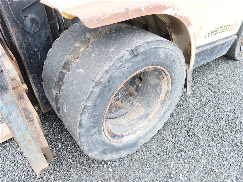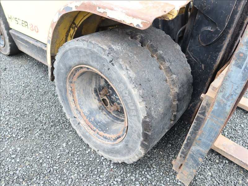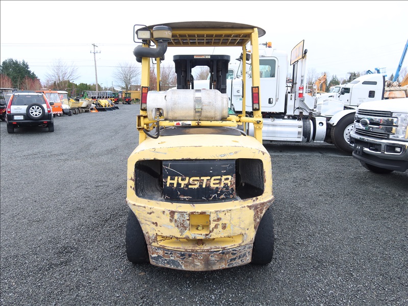 5,050 LB DUAL SOLID TIRE FORKLIFT, 173" FORK HEIGHT, 3-STAGE MAST, SIDE SHIFT, 6 CYL LPG