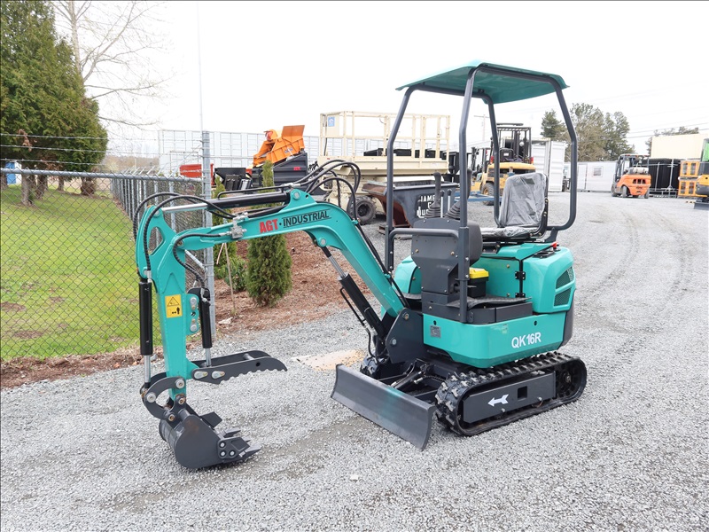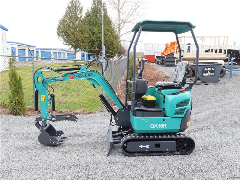 MINI EXCAVATOR, 13.5 HP RATO 420CC GAS, 15" BUCKET, THUMB, AUX HYD, BLADE, RUBBER TRACKS, CANOPY