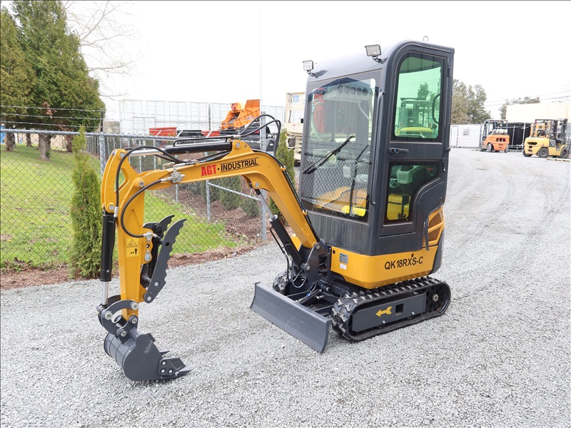 MINI EXCAVATOR, 13.5 HP RATO 420CC GAS, 15' BUCKET, THUMB, AUX HYD, BLADE, RUBBER TRACKS, A/C CAB