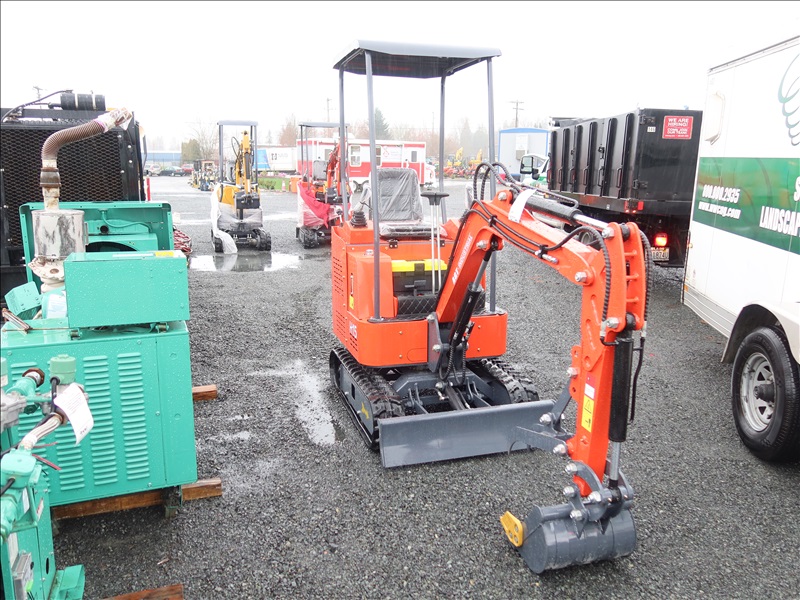 MINI EXCAVATOR, 13.5 HP RATO 420CC GAS, 15" BUCKET, THUMB, AUX HYD, BLADE, RUBBER TRACKS, CANOPY