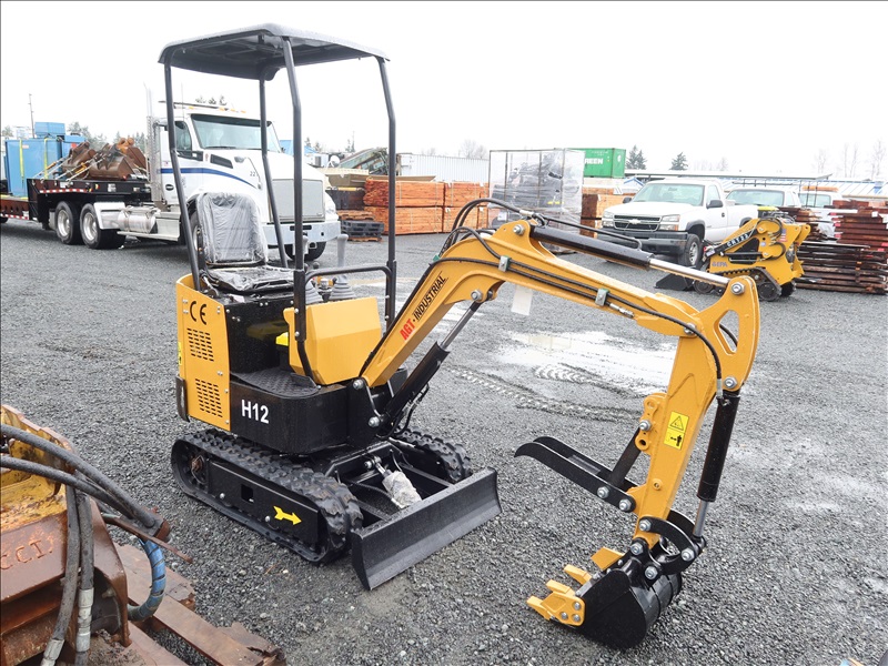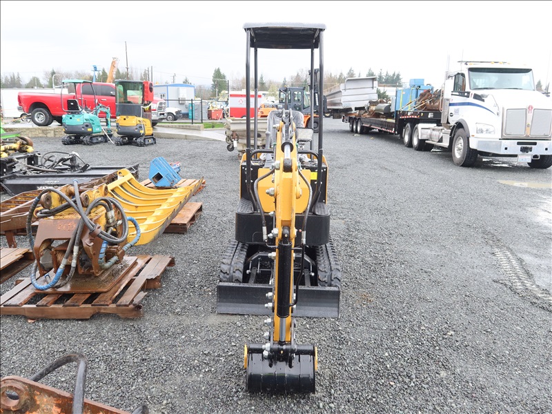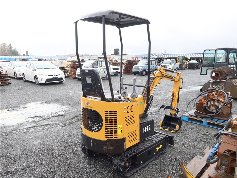 MINI EXCAVATOR, 13.5 HP BRIGGS & STRATTON XR 1 CYL GAS, 15" BUCKET, THUMB, AUX HYD, BLADE, RUBBER TRACKS, CANOPY