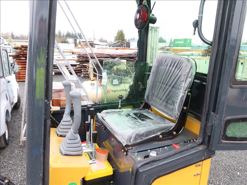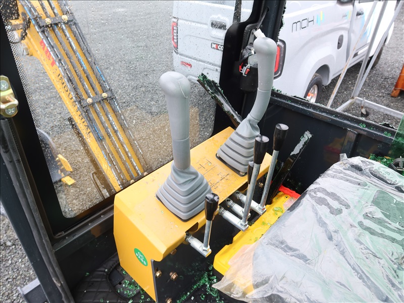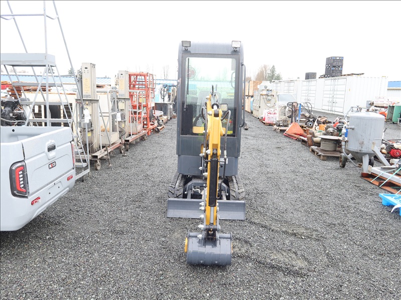 MINI EXCAVATOR, 13.5 HP RATO 420CC GAS, 15" BUCKET, THUMB, AUX HYD, BLADE, RUBBER TRACKS, CAB (*DAMAGED WINDOW)