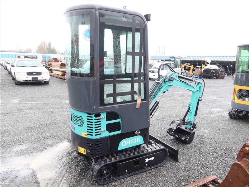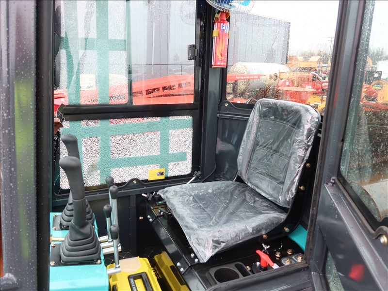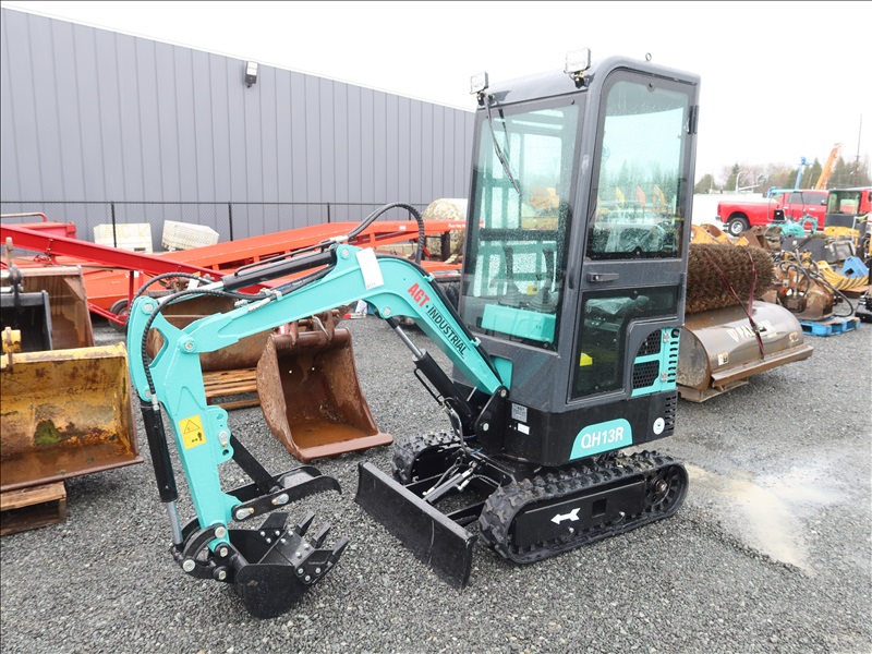 MINI EXCAVATOR, 13.5 HP RATO 420CC GAS, 15" BUCKET, THUMB, AUX HYD, BLADE, RUBBER TRACKS, CAB (*DAMAGED WINDOW)