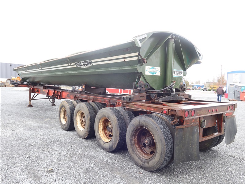 QUAD/A, 48', 69,690 LB CONTAINER CHASSIS W/SMITHCO 40' SIDE DUMP ATTACHMENT, LOADMAN LOAD CELLS, SPRING SUSPENSION, ELECTRIC TARP SYSTEM, A/B