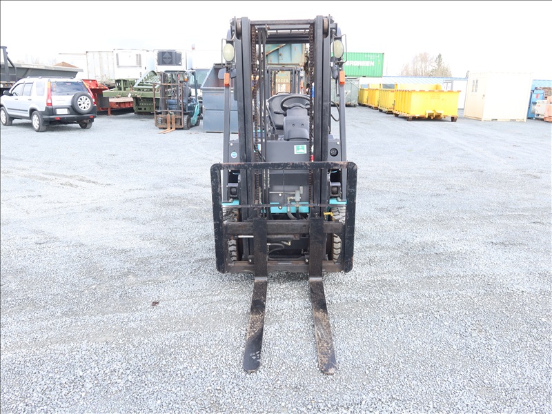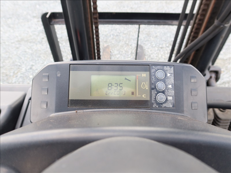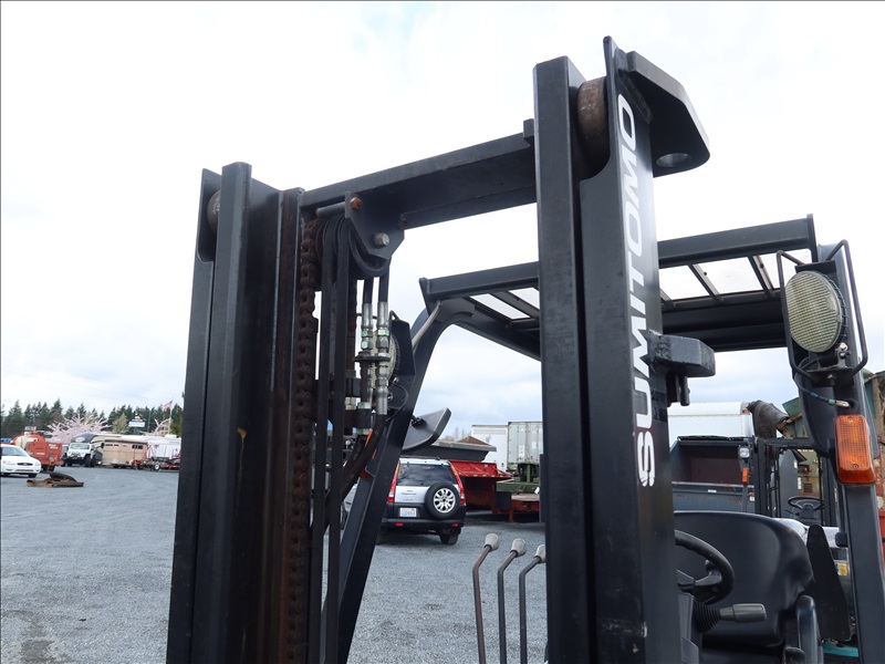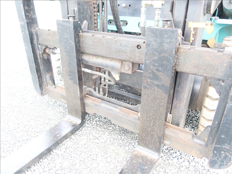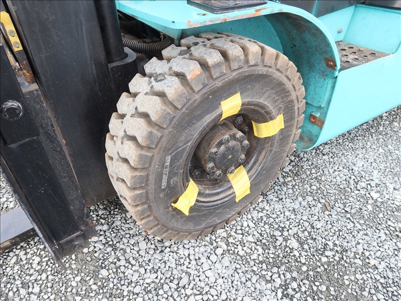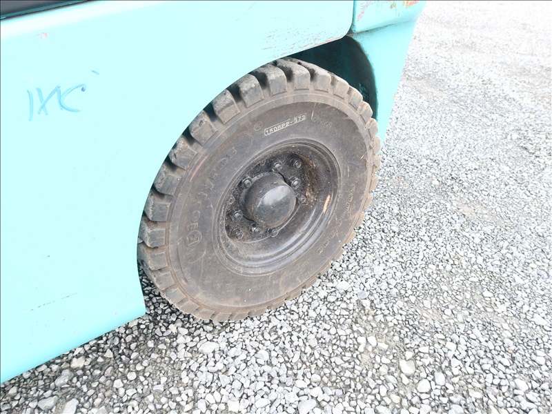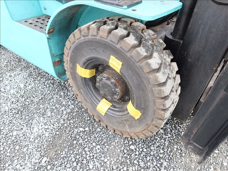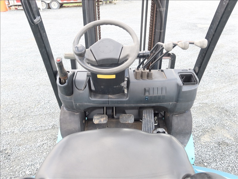 3,858 LB SOLID TIRE FORKLIFT, 118" FORK HEIGHT, 2-STAGE MAST, 4 CYL LPG (NO PROPANE TANK, CHECK ENGINE LIGHT IS ON)