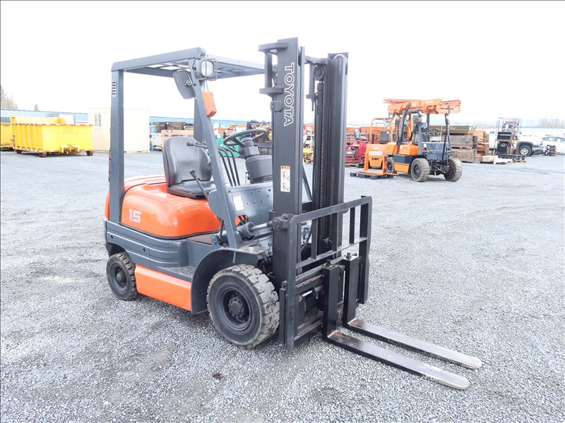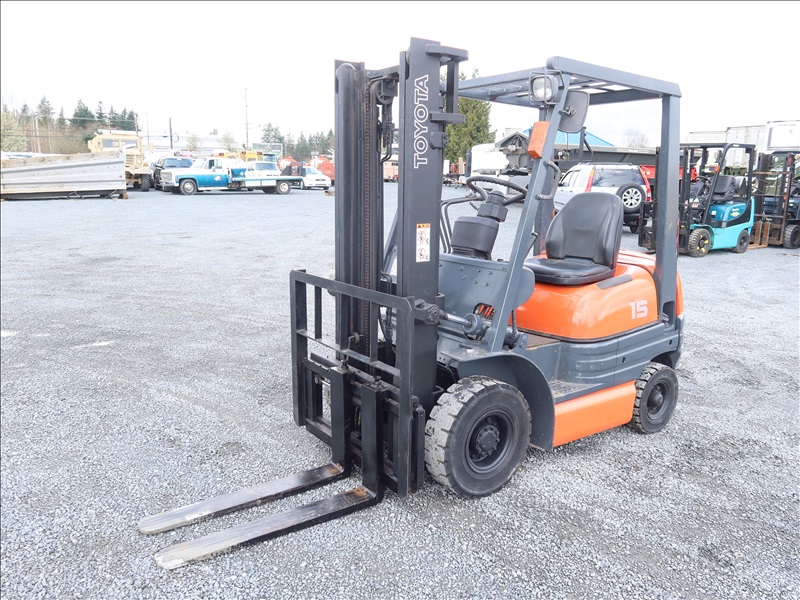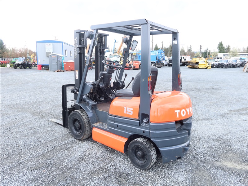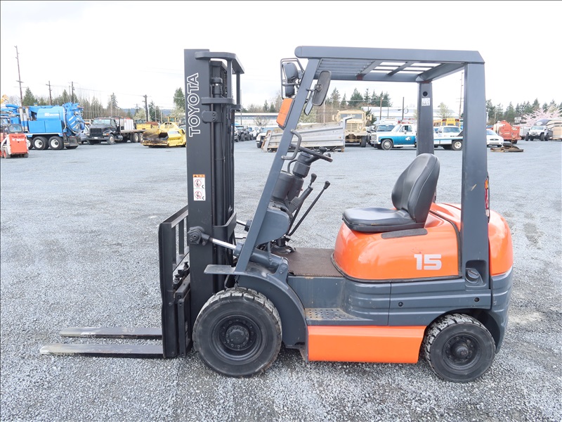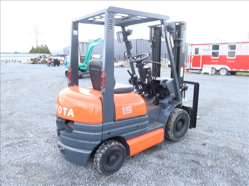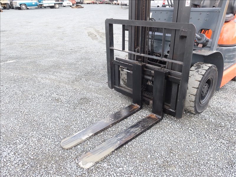 3,196 LB SOLID TIRE FORKLIFT, 118" FORK HEIGHT, 2-STAGE MAST, 4 CYL GAS