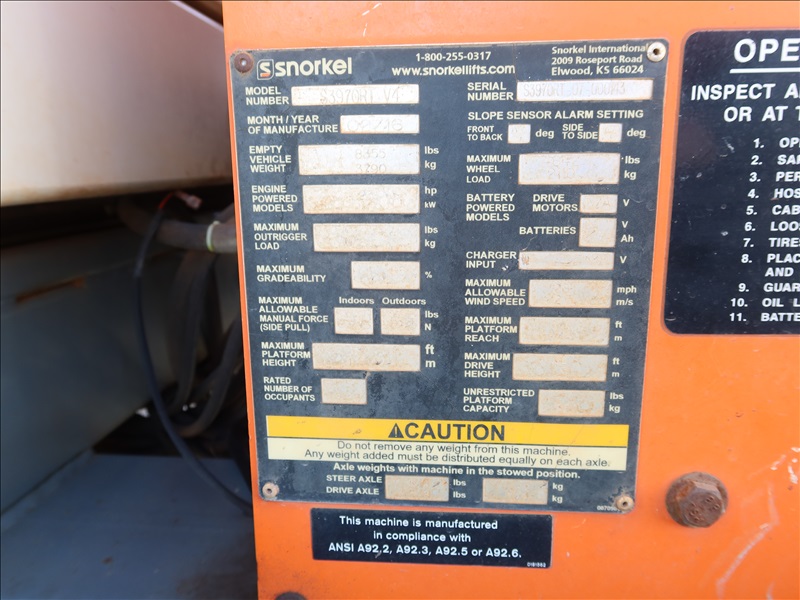4X4 ROUGH TERRAIN SCISSOR LIFT, 39' PLATFORM HEIGHT, 772 LB CAPACITY, OUTRIGGERS, A/C RECEPTACLE AT PLATFORM, KUBOTA D902-EF01 (HOUR METER REPLACED AT 431)