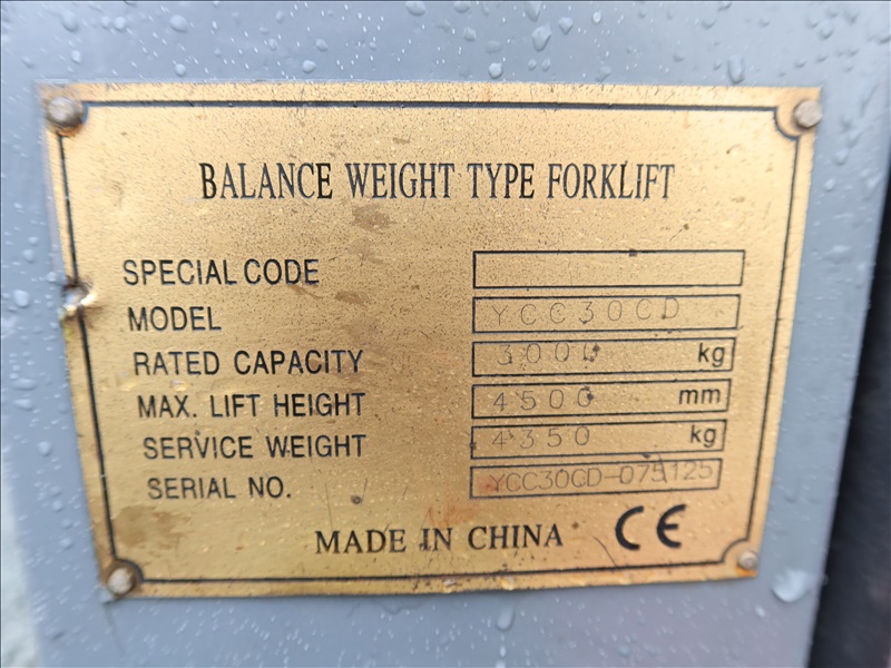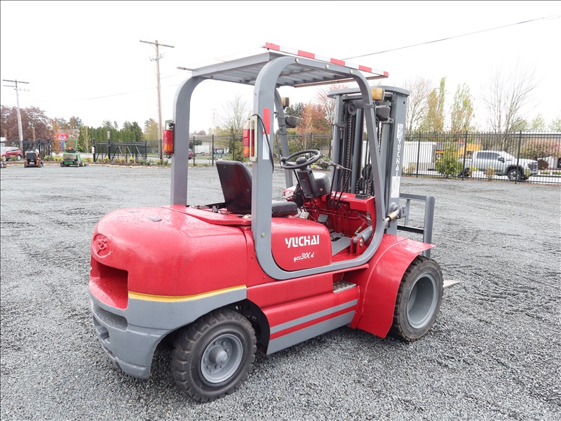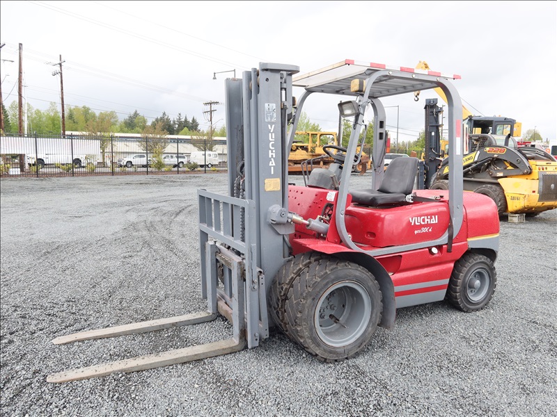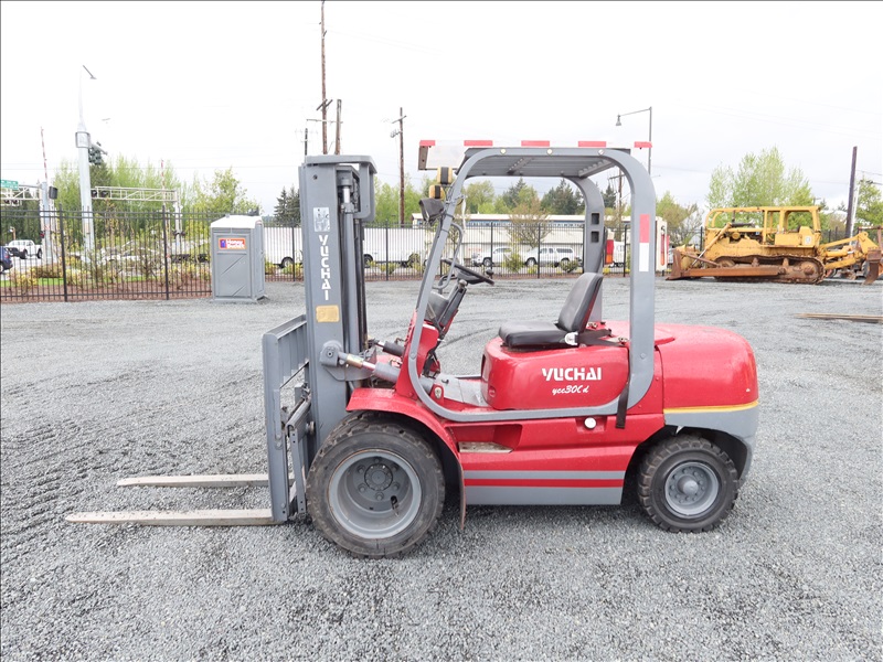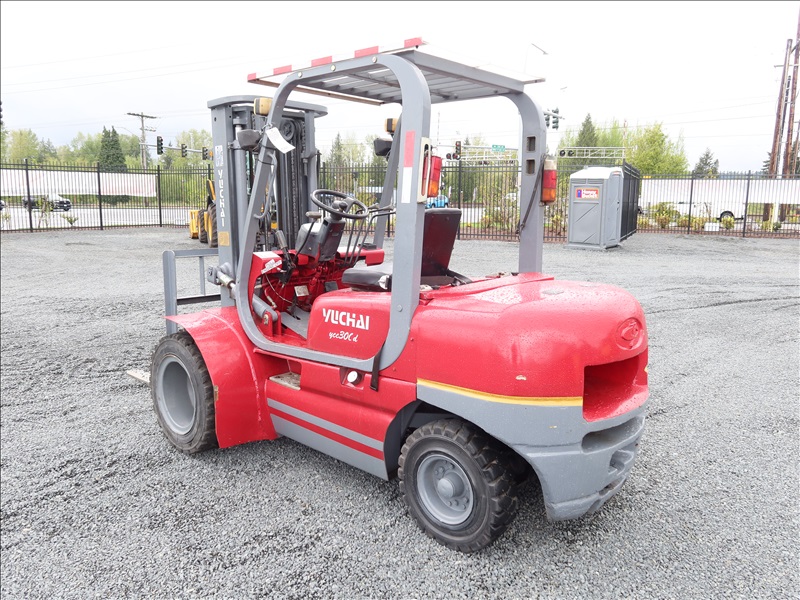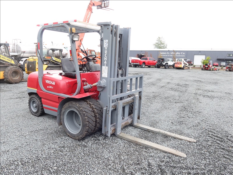 6,613 LB DUAL SOLID TIRE FORKLIFT, 177" FORK HEIGHT, 3-STAGE MAST, 4 CYL DIESEL