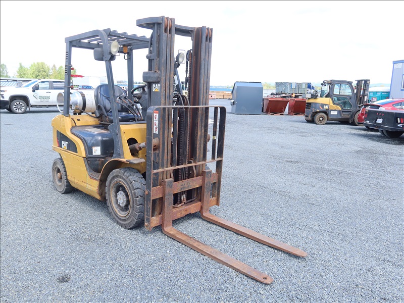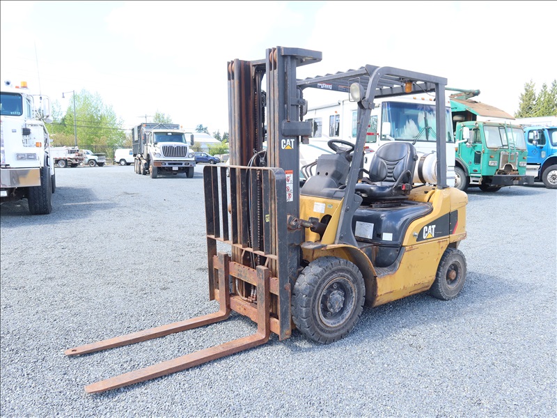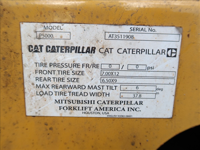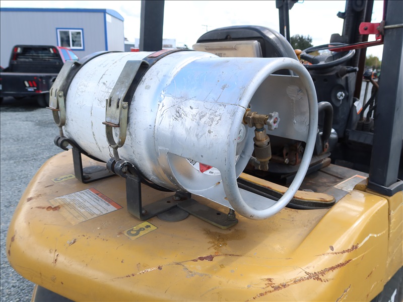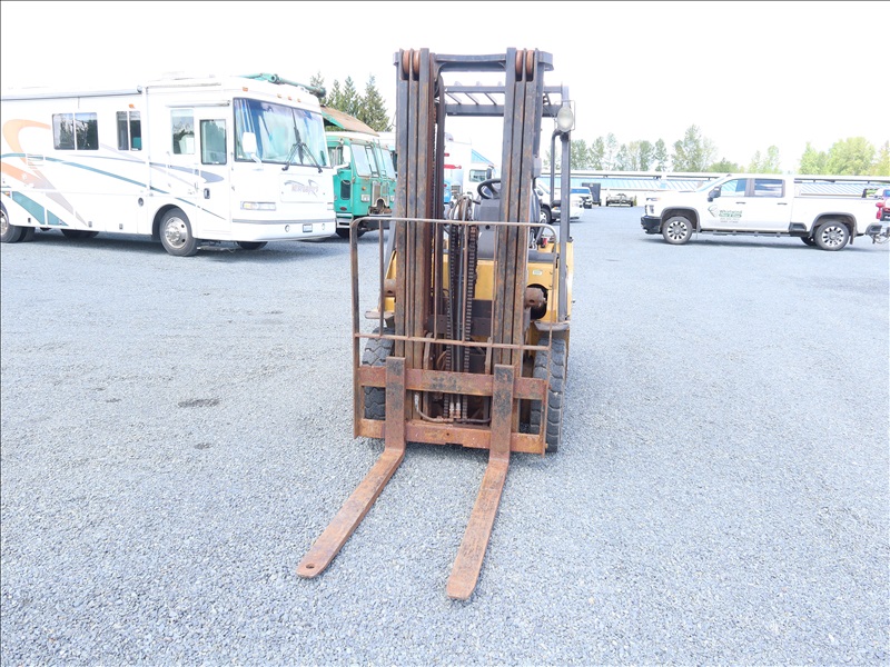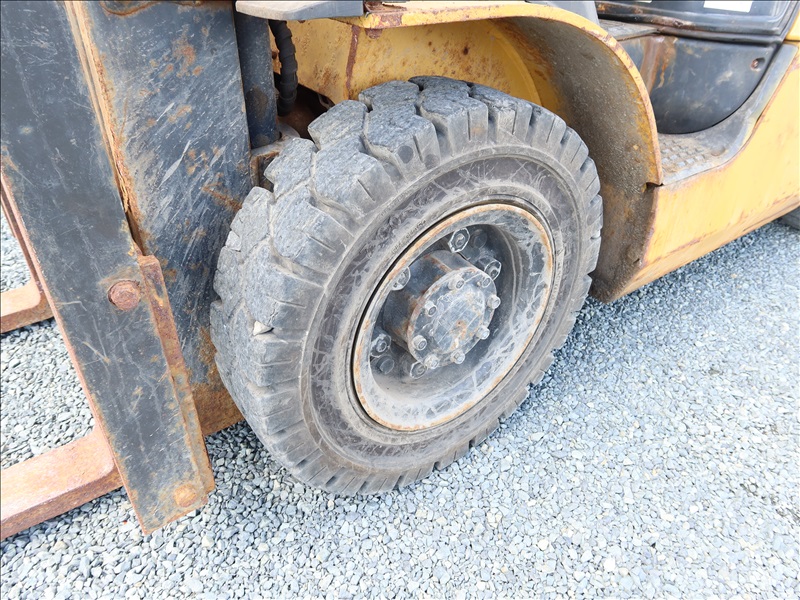 5,000 LB SOLID TIRE FORKLIFT, 188" FORK HEIGHT, 3-STAGE MAST, 4 CYL LPG