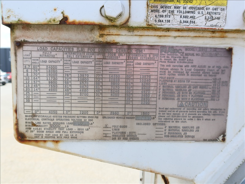 DIGGER DERRICK, DT 466, AUTO, ALTEC D947 TR, 35', 7,600 LB, 6' AUGER, HYD OUTRIGGERS, A/B (ABS LIGHT IS ON)