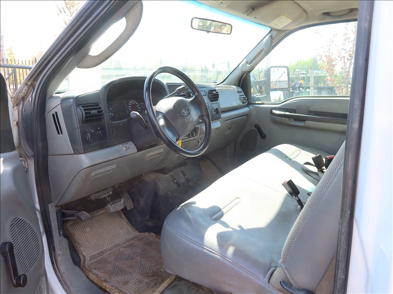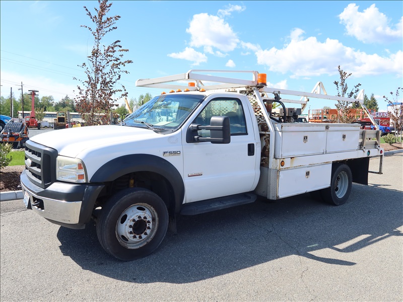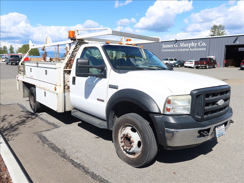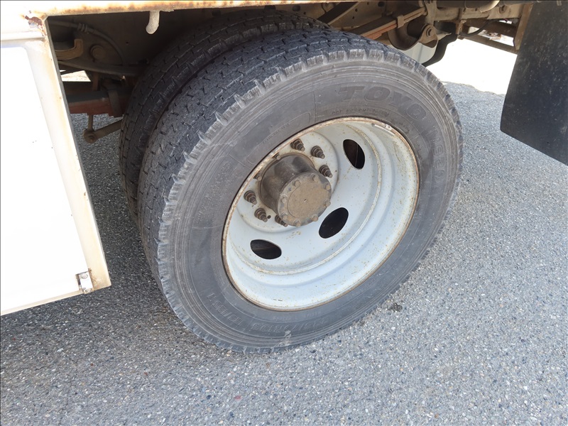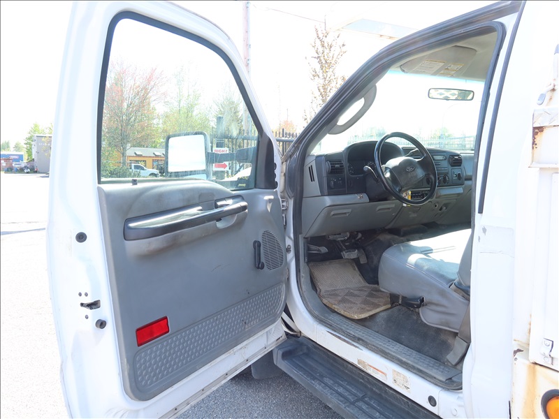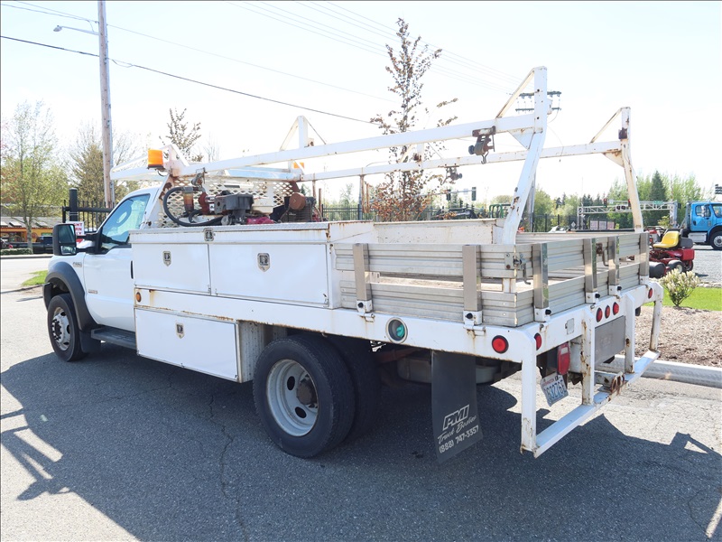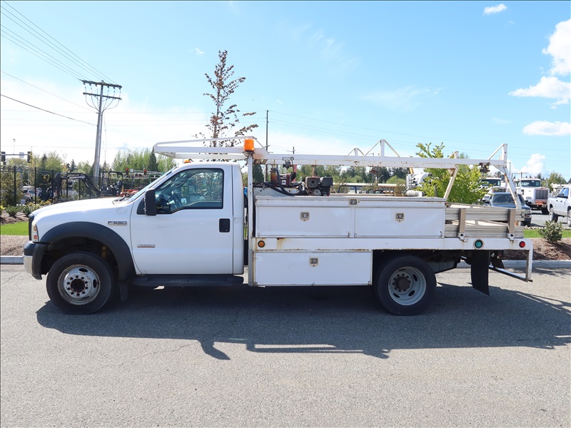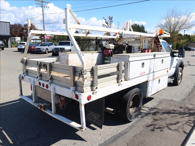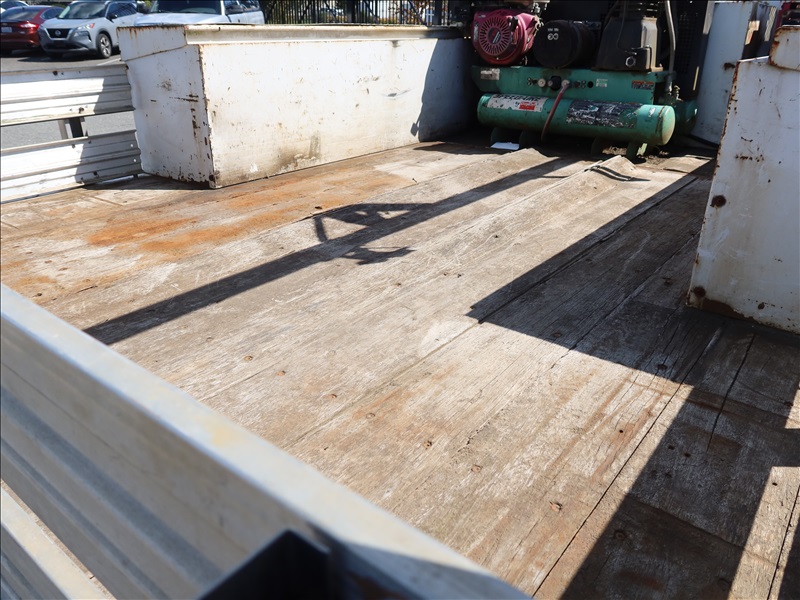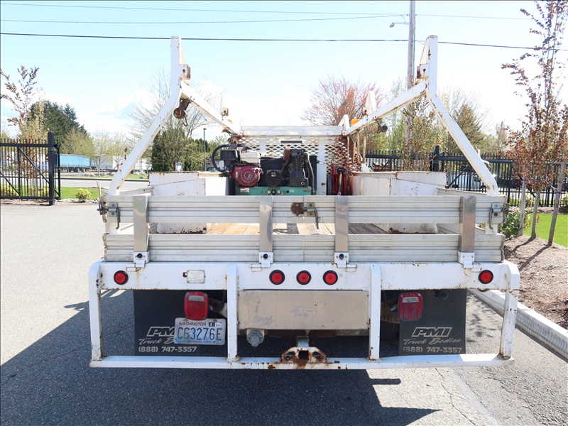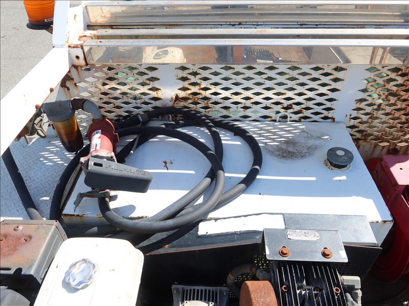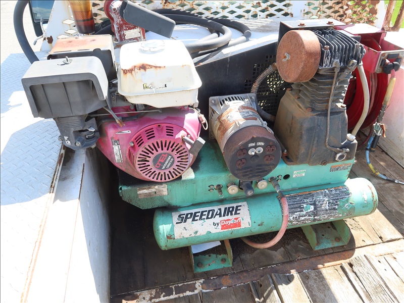 12' FLATBED, POWER STROKE, AUTO, DAYTON SPEEDAIRE COMPRESSOR, TRANSFER TANK W/PUMP