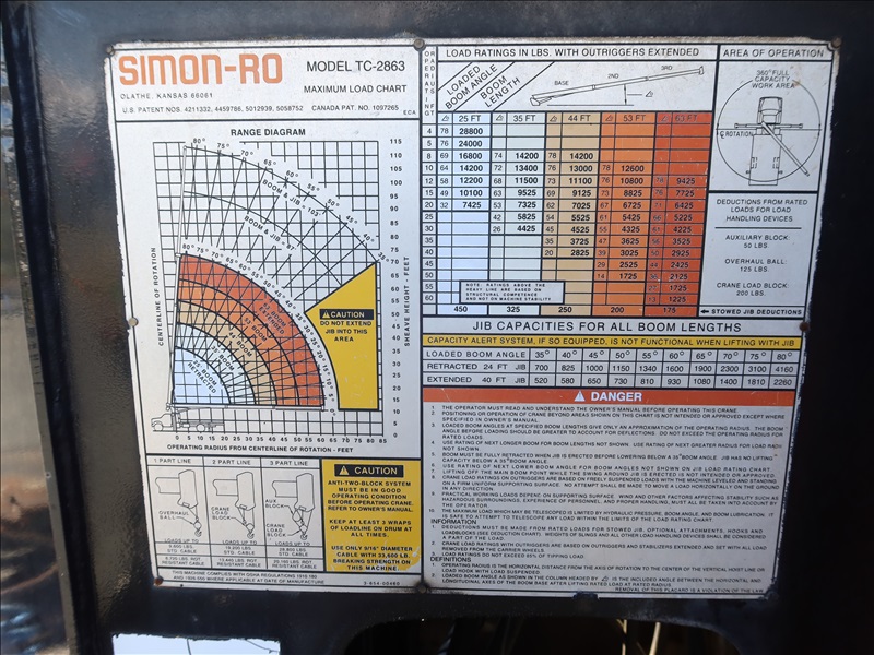 T/A, TRACTOR/CRANE, 350 HP CUMMINS NTC, 8 SPD, SIMON-RO TM2863 28M800 LB CRANE, 53' 3-SECTION BOOM, OUTRIGGERS, SPRING SUSPENSION, 244" W/B, SLIDER, A/B