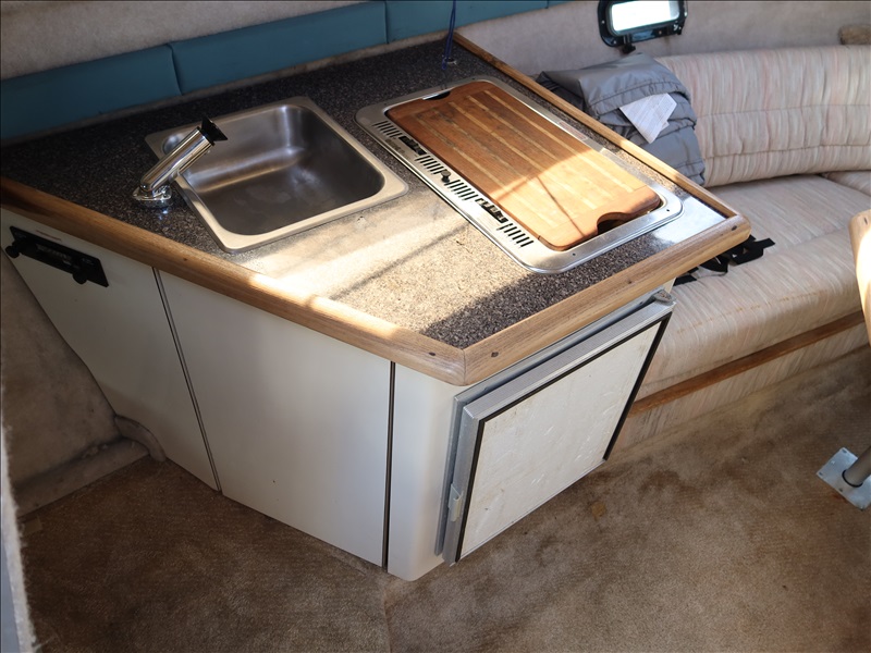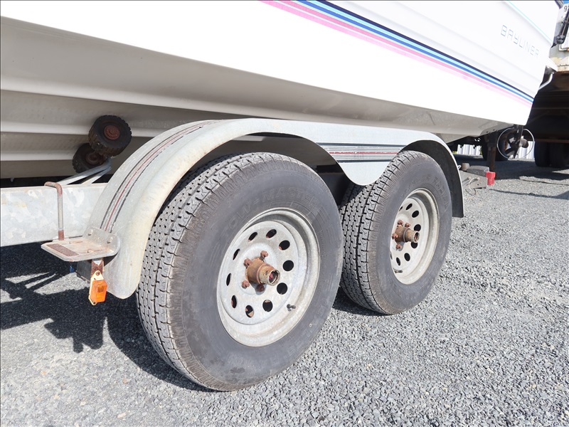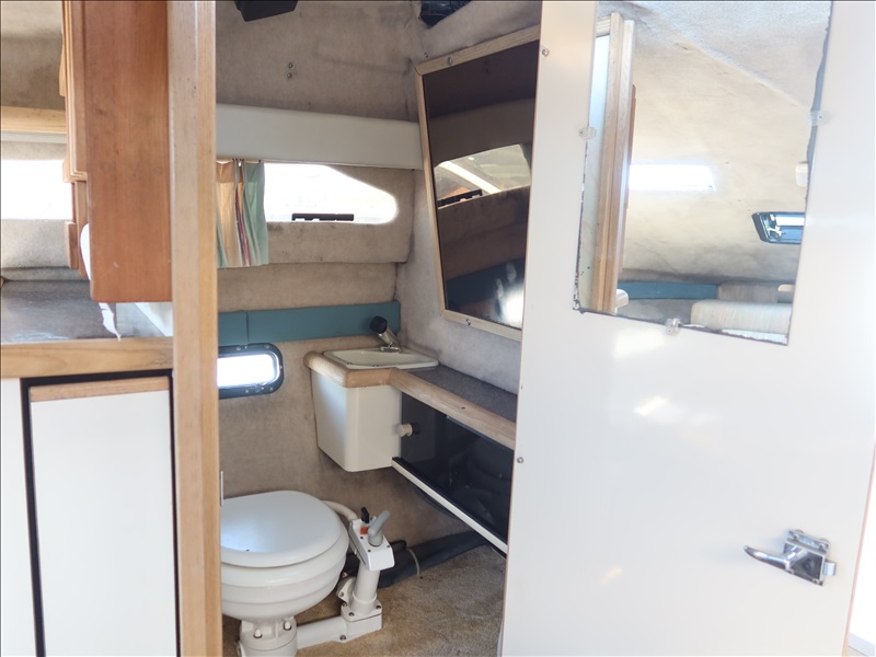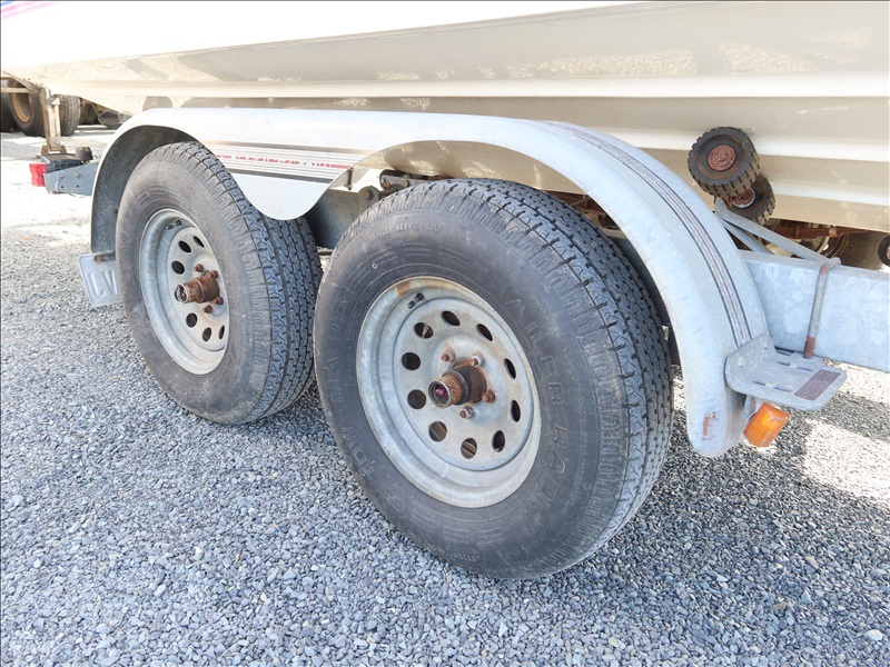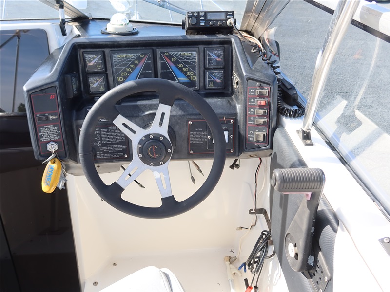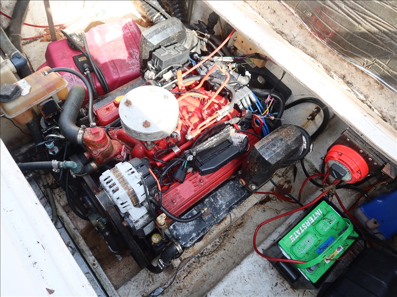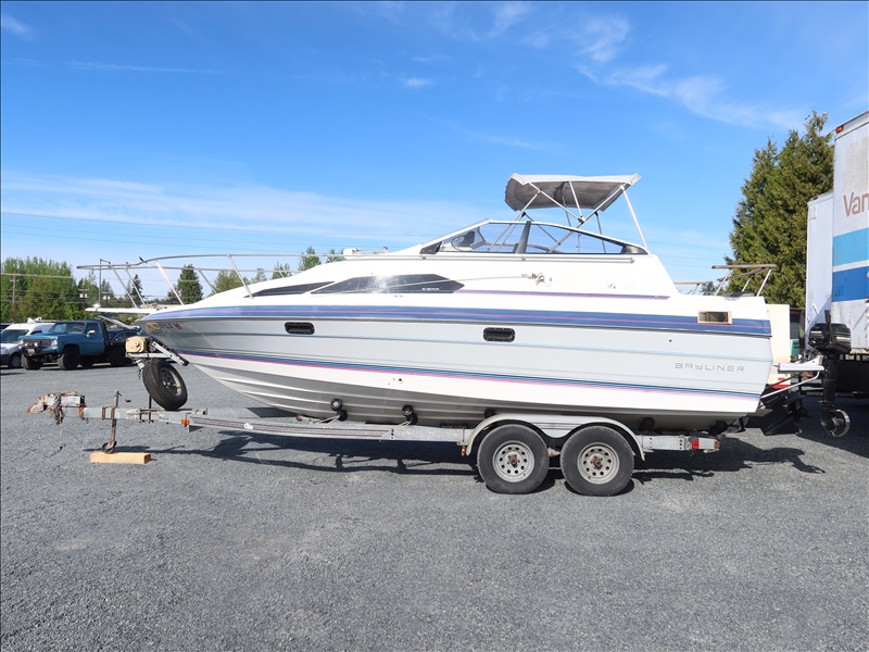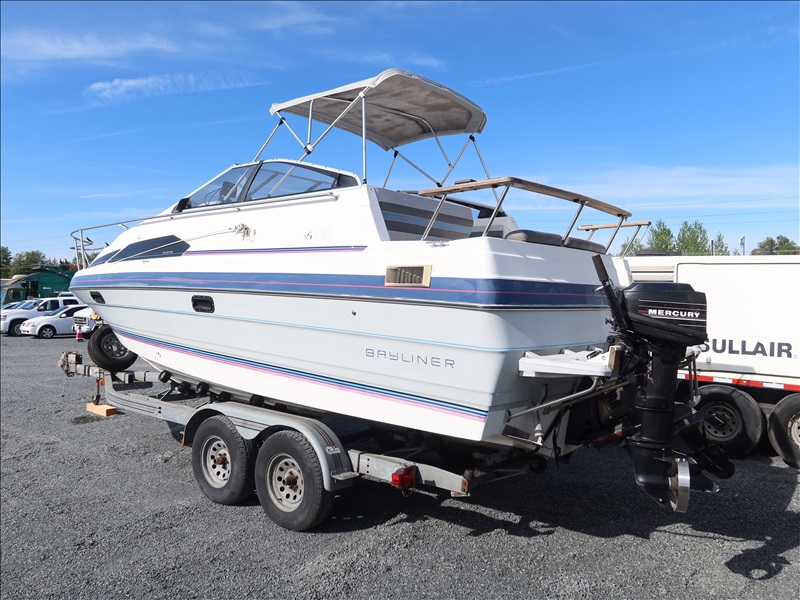 24', CABIN CRUISER, OMC V8 I/O OMC COBRA OUTDRIVE, MERCURY 9.9 TROLLING MOTOR, TRIM TABS, GARMIN 160 FISHFINDER, CANVAS TOP W/CALKINS T/A, GALVANIZED BOAT TRAILER, SURGE BRAKES, 225/75R15