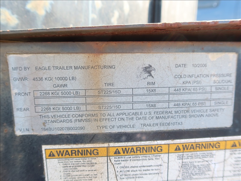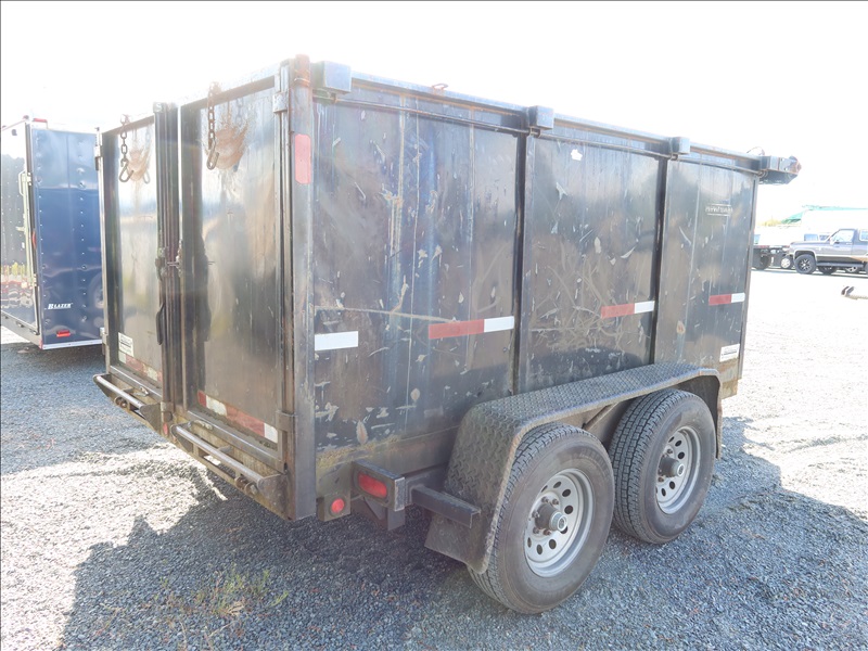 T/A, 10' X 6', 10,000 LB GVWR HYDRAULIC DUMP TRAILER, SPRING SUSPENSION, 12V PUMP, MANUAL TARP SYSTEM, RAMPS, SWING DOORS, ELECT BRAKES, 225/75R15