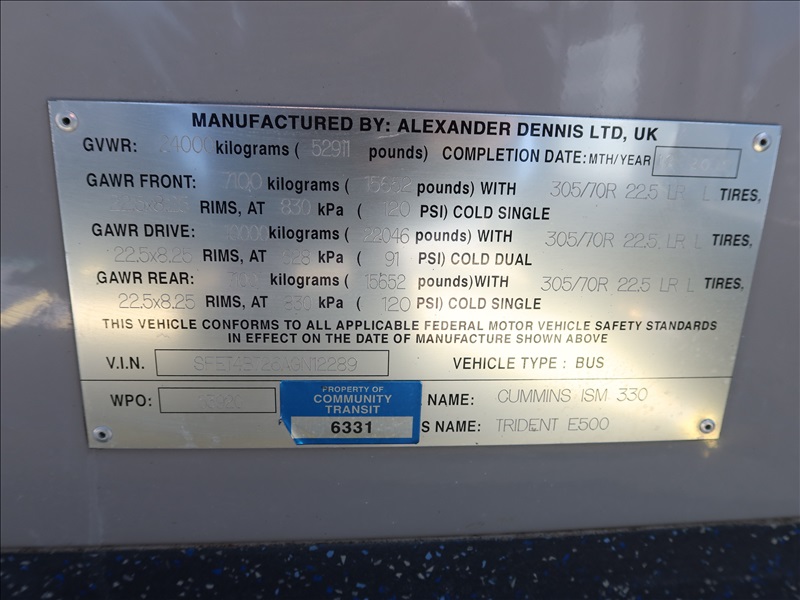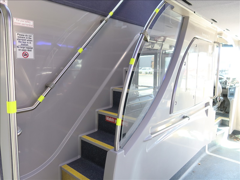T/A, 77-PASSENGER DOUBLE DECER TRANSIT BUS, 330 HP, CUMMINS ISM, AUTO, A/B, PROACTIVE AIR & SURFACE PURIFICATION SYSTEM, BIKE RACK, RAMP, SAFETY VISION CAMERAS