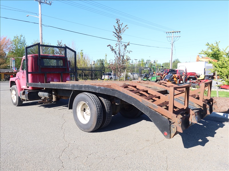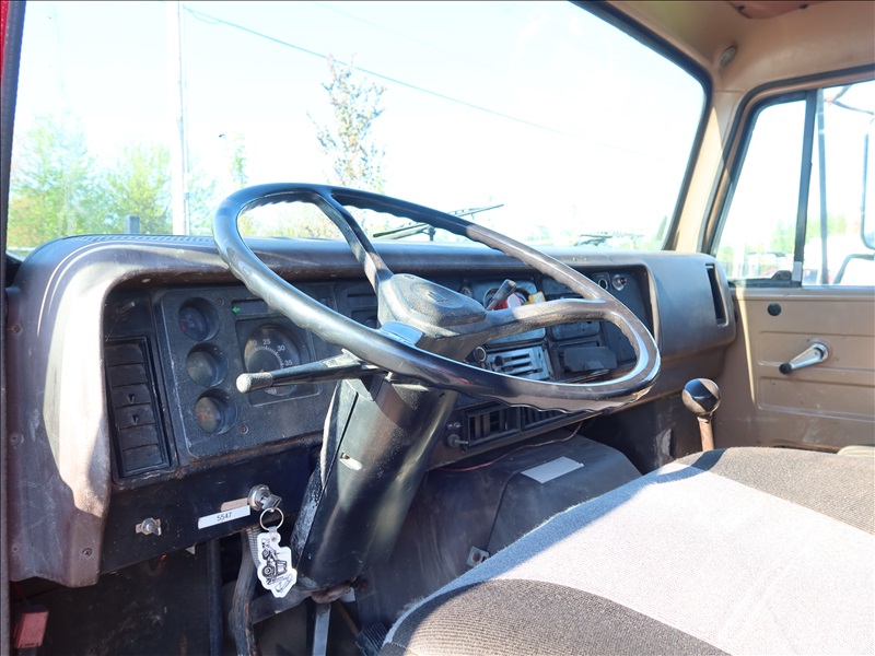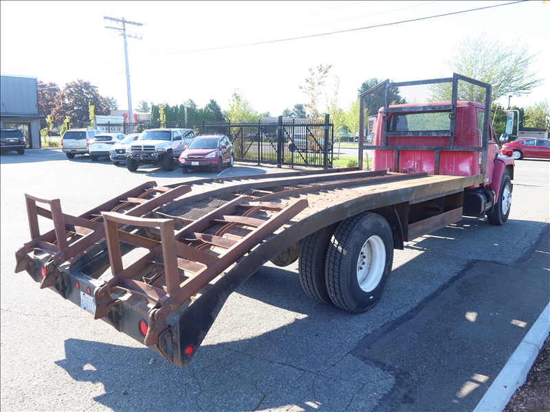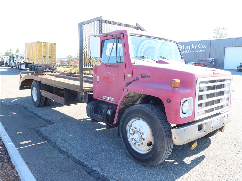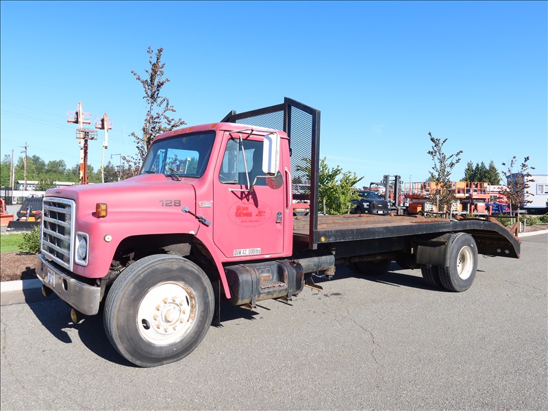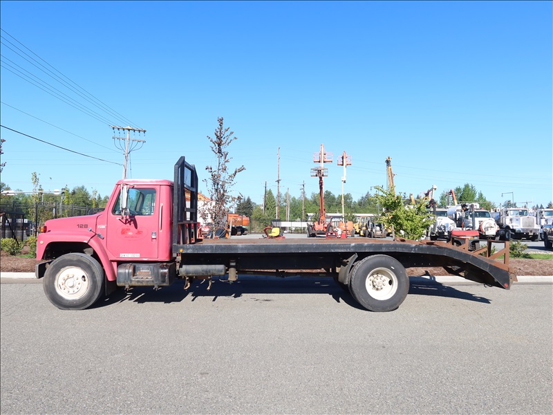 RAMP TRUCK, 20' STEEL BED, DT466, 5 SPD, A/B
