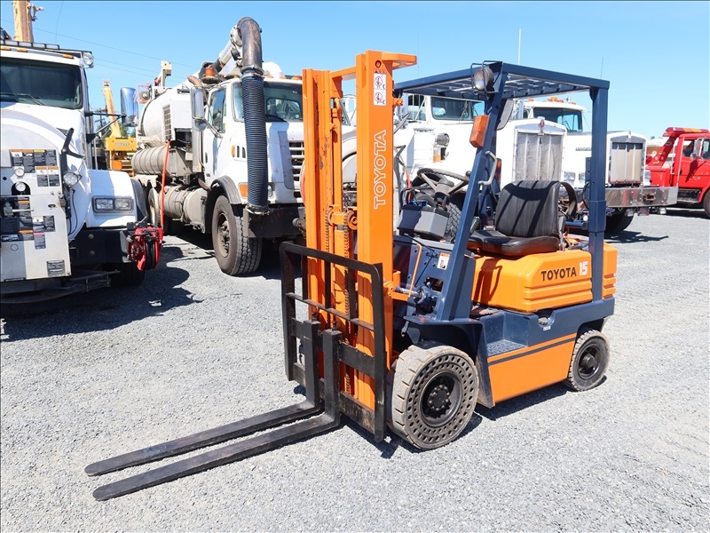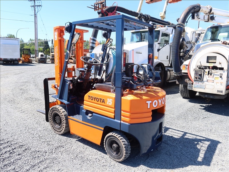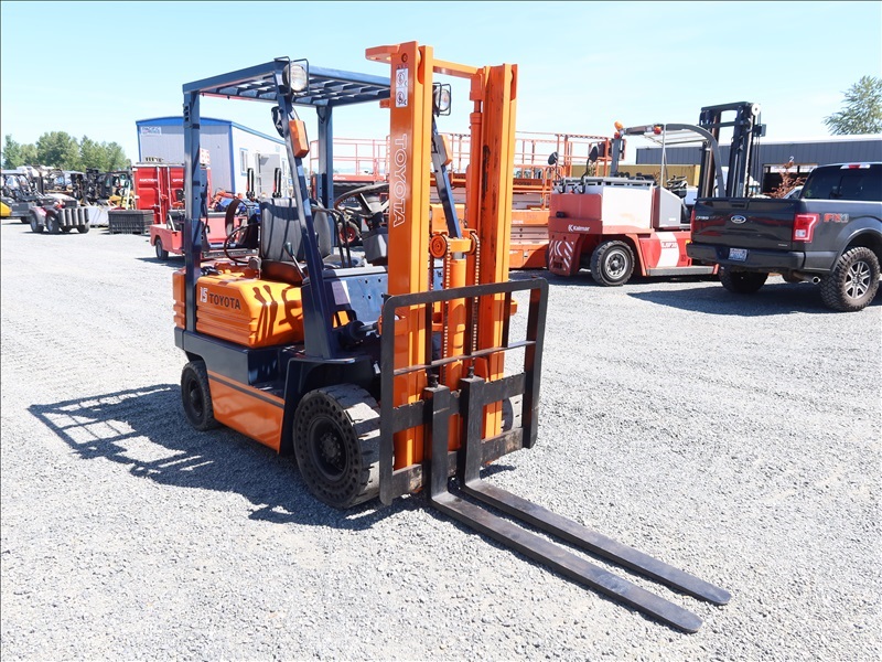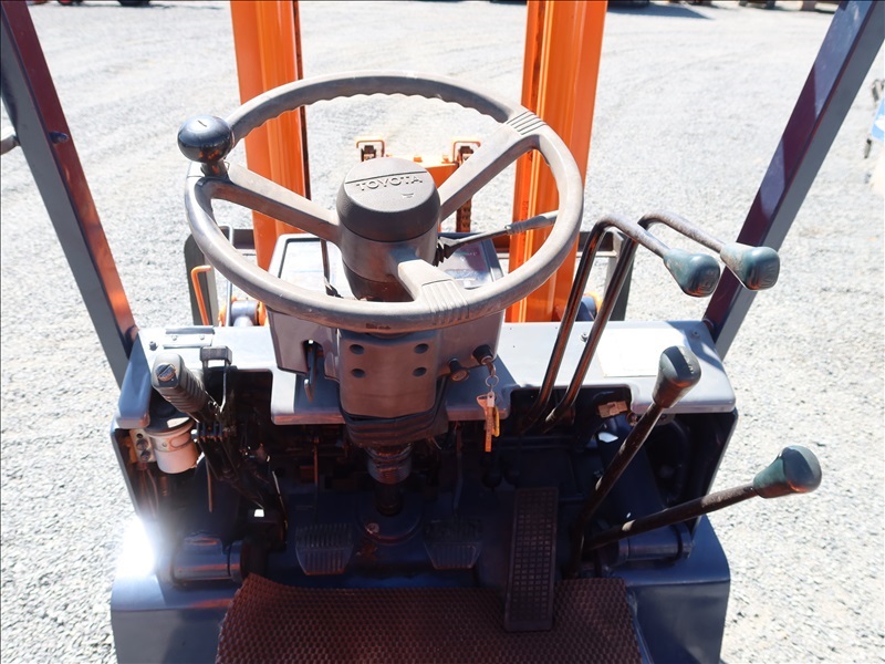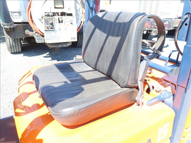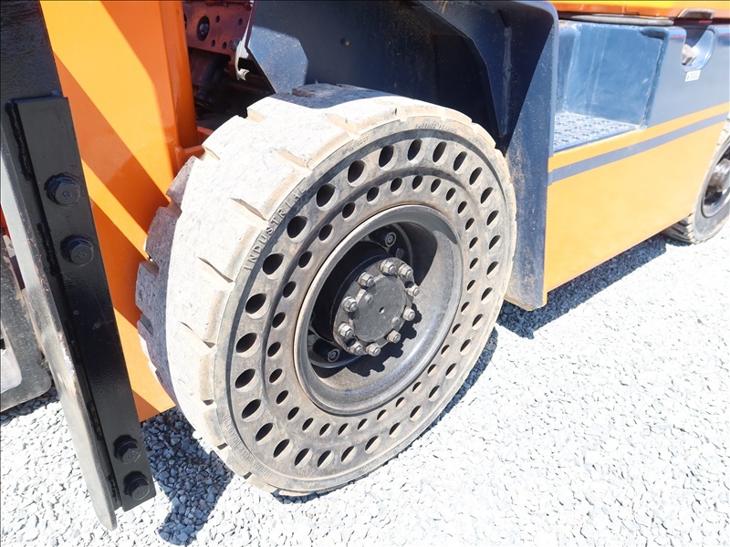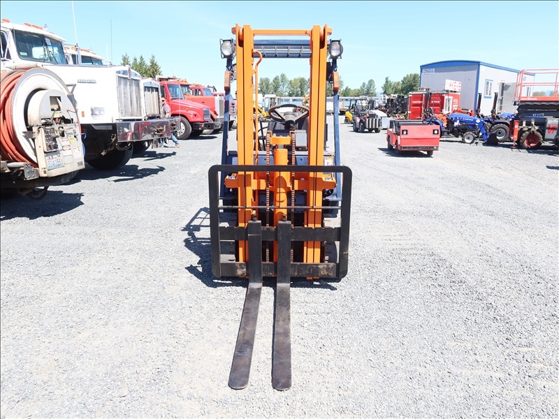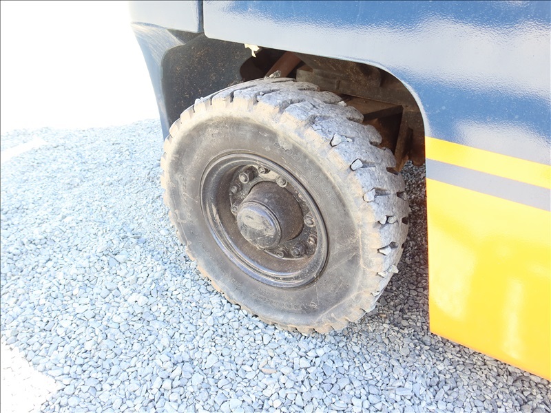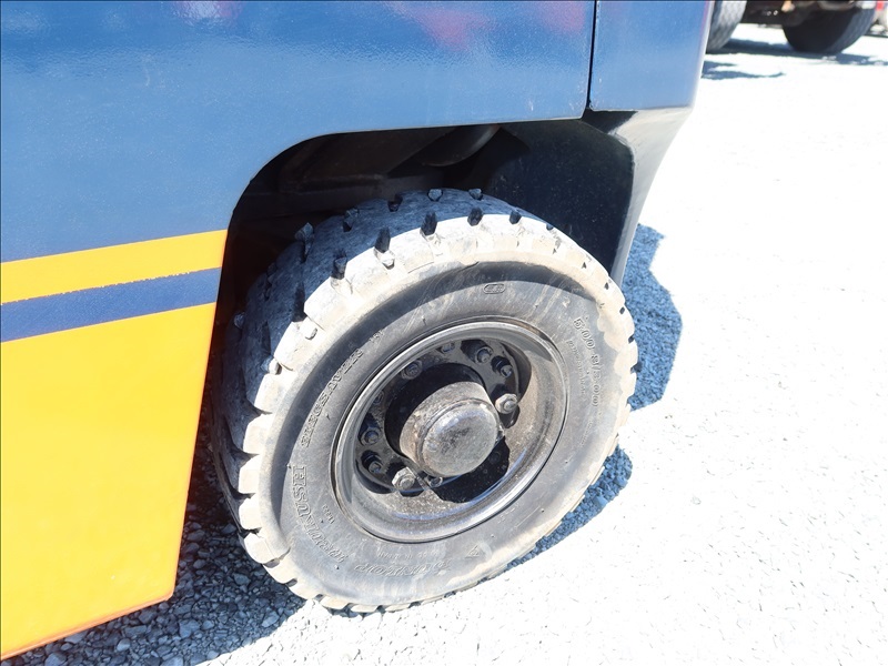 3,300 LB SOLID AIR TIRE FORKLIFT, 118" FORK HEIGHT, 2-STAGE MAST, 4 CYL GAS/LPG, NO PROPANE TANK (BRAKES NEED REPAIR)