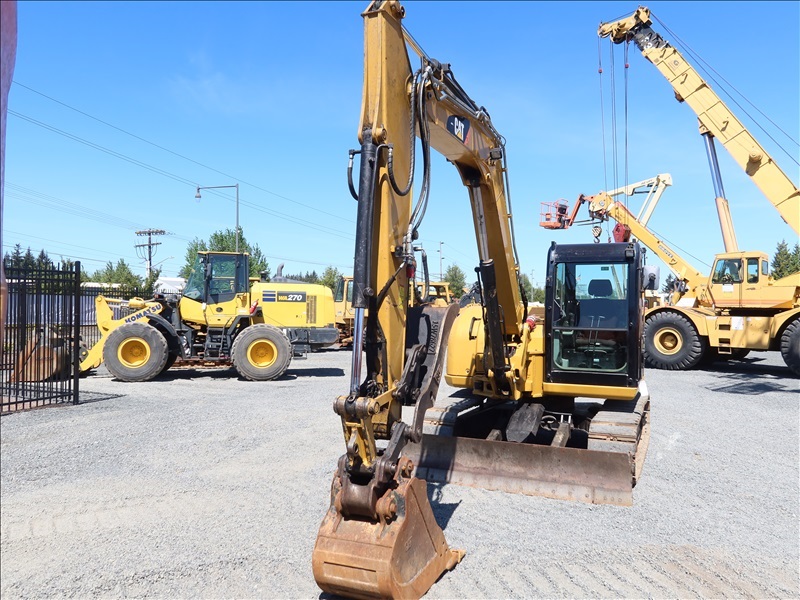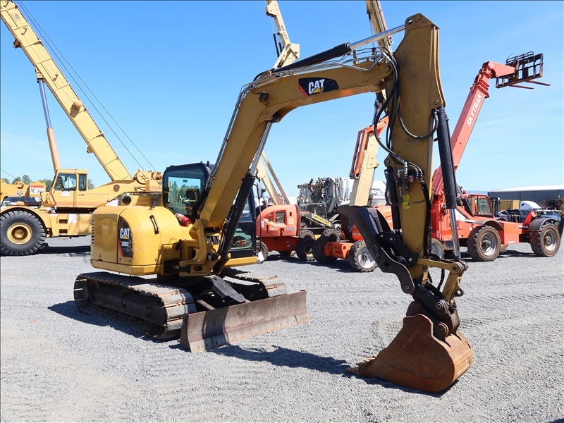 HYDRAULIC EXCAVATOR, 65 HP C3.3B, SWING BOOM, 7'3" STICK, HYD THUMB, PIN GRABBER, 21" BUCKET, AUX HYD, BLADE, TRACK PADS, A/C CAB