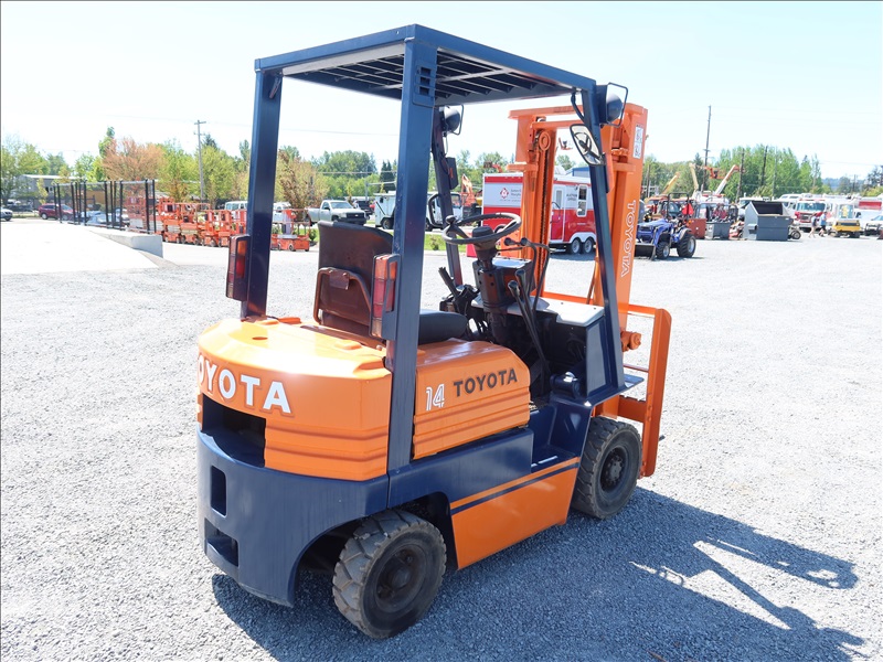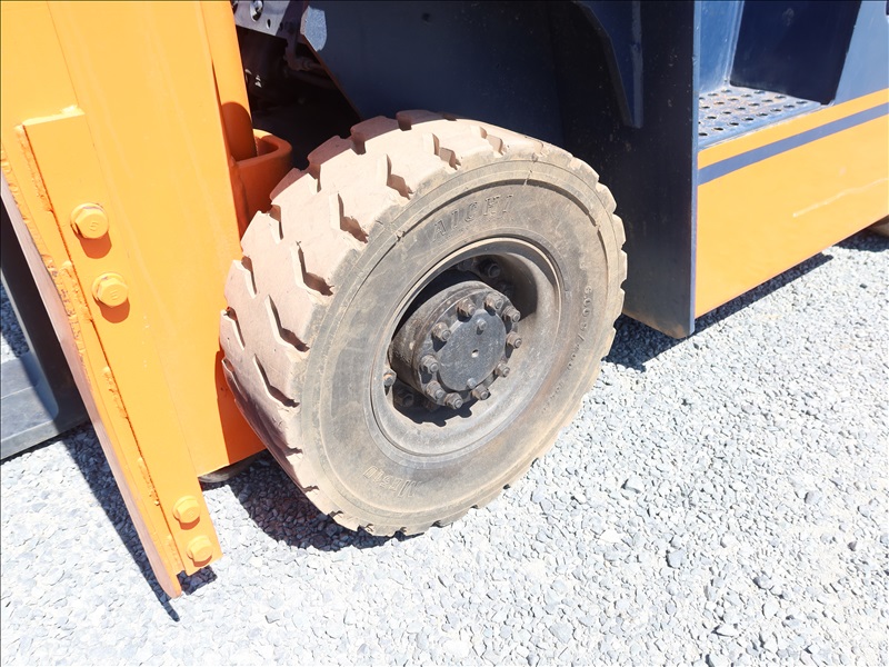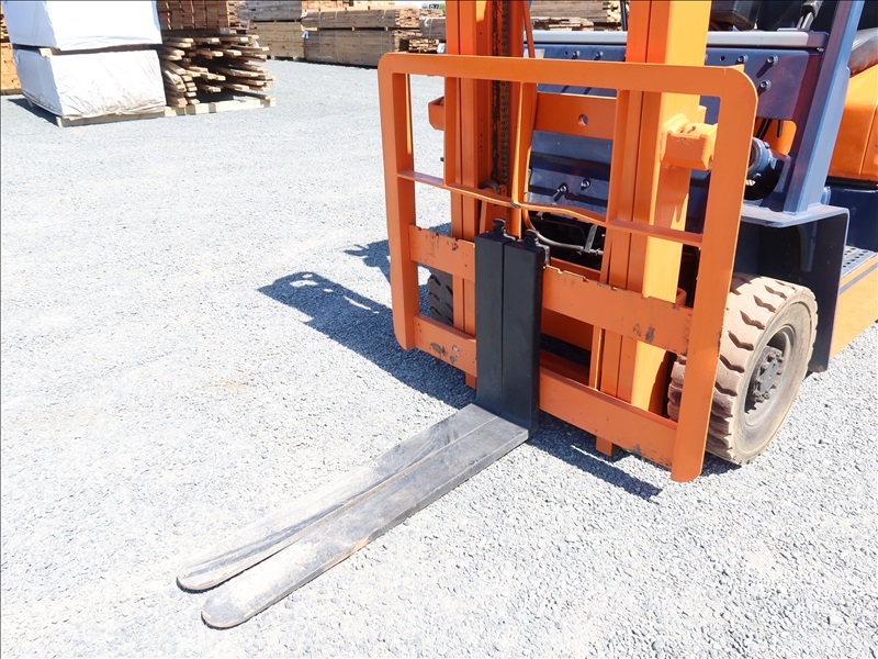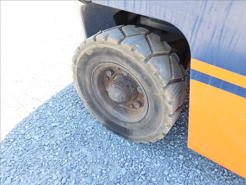 2,970 LB SOLID TIRE FORKLIFT, 118" FORK HEIGHT, 2-STAGE MAST, 4 CYL GAS