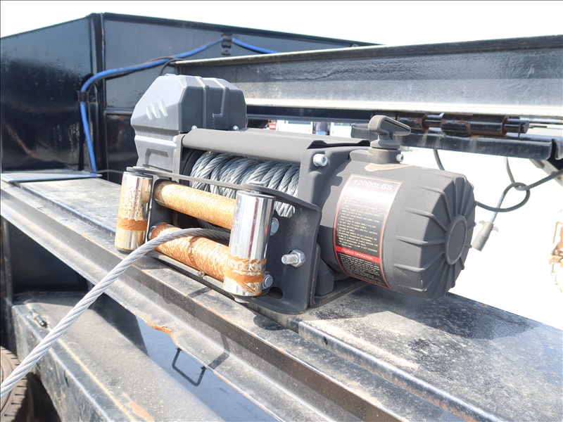 TRI/A, 40' X 8'6", 12,000 LB GVWR GOOSENECK FLATBED TRAILER, SPRING BEAM SUSPENSION, FOLD DOWN RAMPS, HOOK RAMPS, 12,000 LB WINCH, ELECT BRAKES, 235/75R17.5