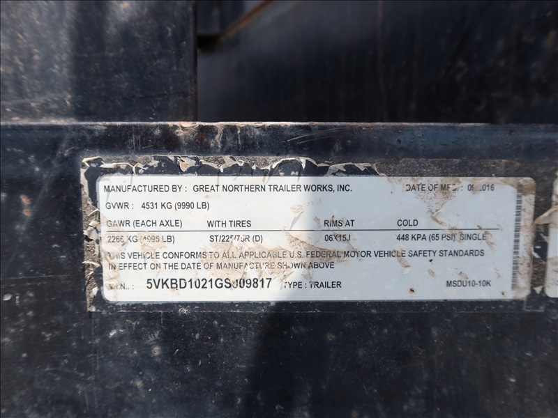 T/A, 10' X 6', 9,990 LB GVWR HYDRAULIC DUMP TRAILER, SPRING SUSPENSION, SWING DOORS, RAMPS, ELECT BRAKES, 225/75R15