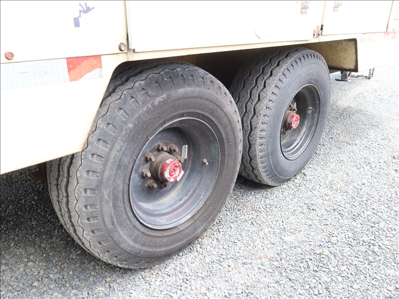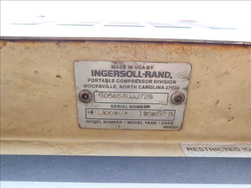 T/A, 1,300 CFM, 150 PSI TRAILER MOUNTED AIR COMPRESSOR, CUMMINS 6 CYL DIESEL, ELECT BRAKES, HOUR METER READS: 12,682