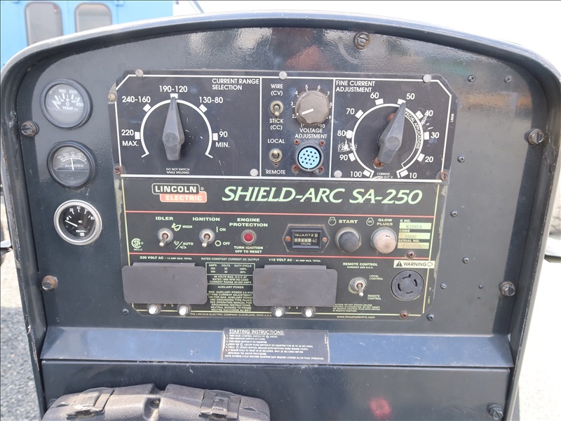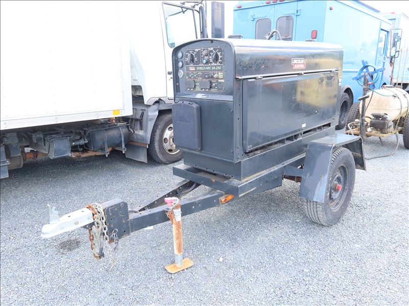 S/A, 250 AMP TRAILER MOUNTED ARC WELDER, PERKINS 4 CYL DIESEL, HOUR METER READS: 3,346