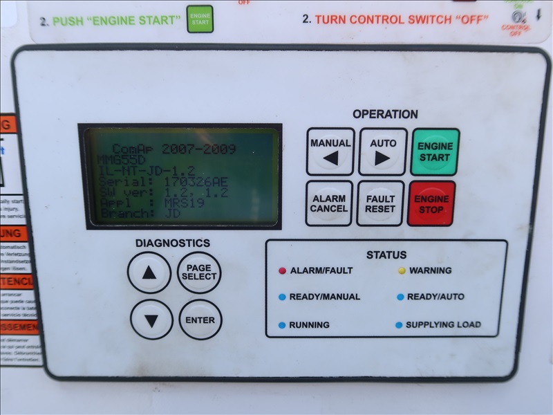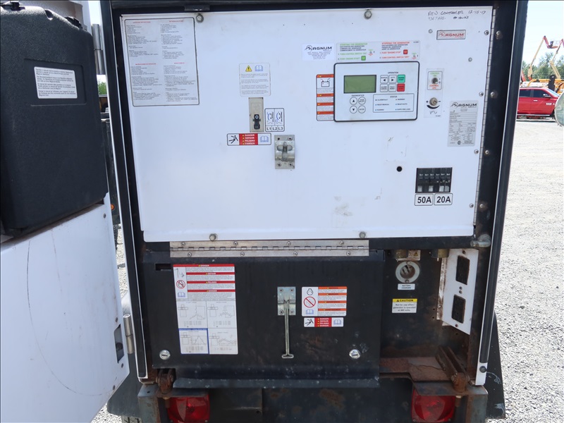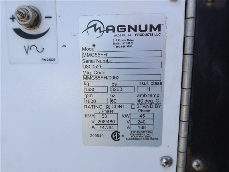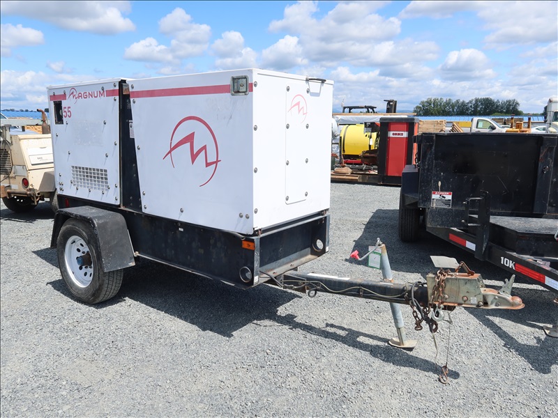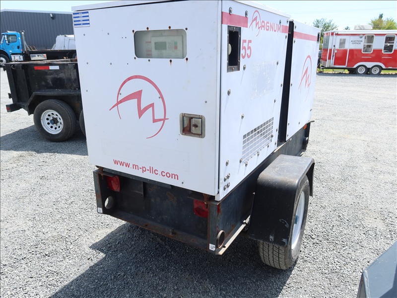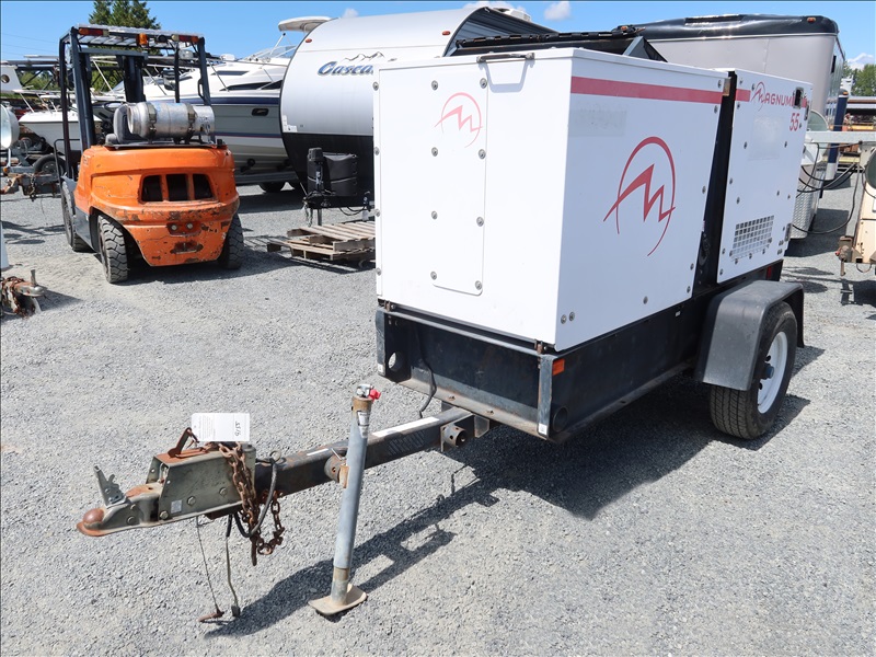 S/A, 53 KVA TRAILER MOUNTED GENERATOR, JOHN DEERE 5 CYL DIESEL, 208/240/480V, SINGLE OR 3 PHASE, SURGE BRAKES, HOUR METER READS: 3,887