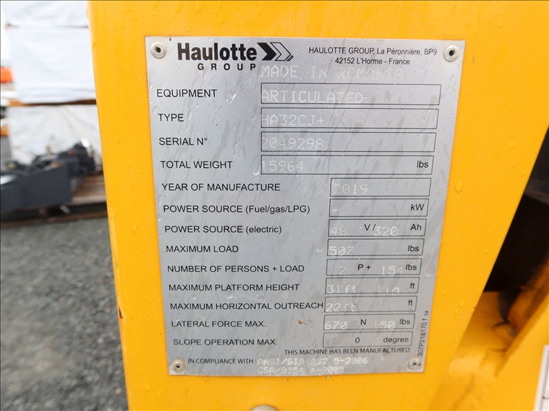 2019 HAULOTTE HA32CJ ARTICULATED BOOM LIFT