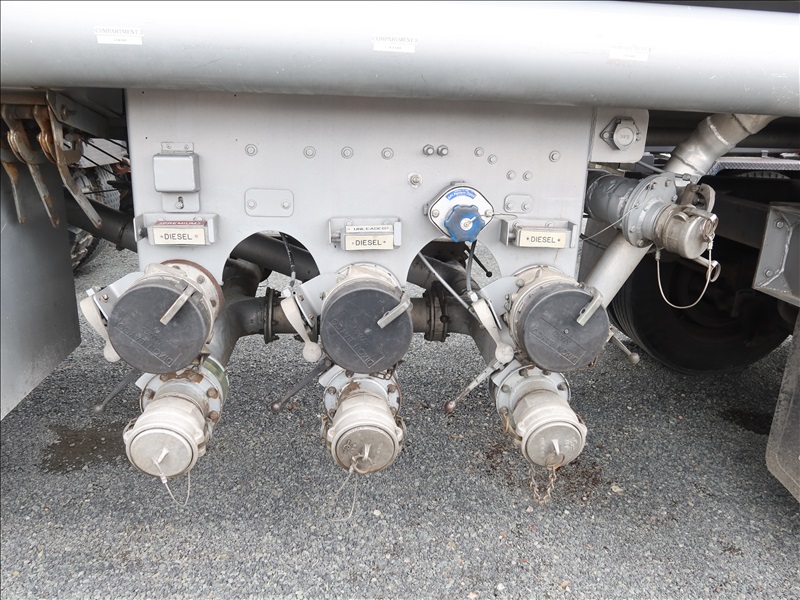 QUAD/A, 6,500 GAL, 3-COMPARTMENT ALUMINUM TANK PATROLEUM TANKER PUP TRAILER, TURN TABLE FRONT AXLES, SPRING SUSPENSION, A/B, 285/75R24.5