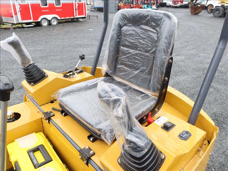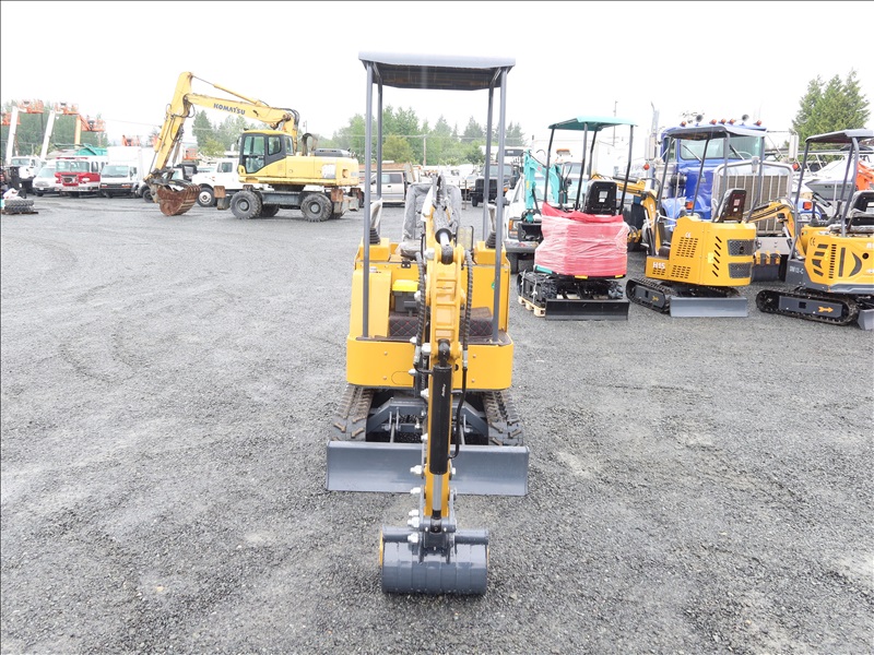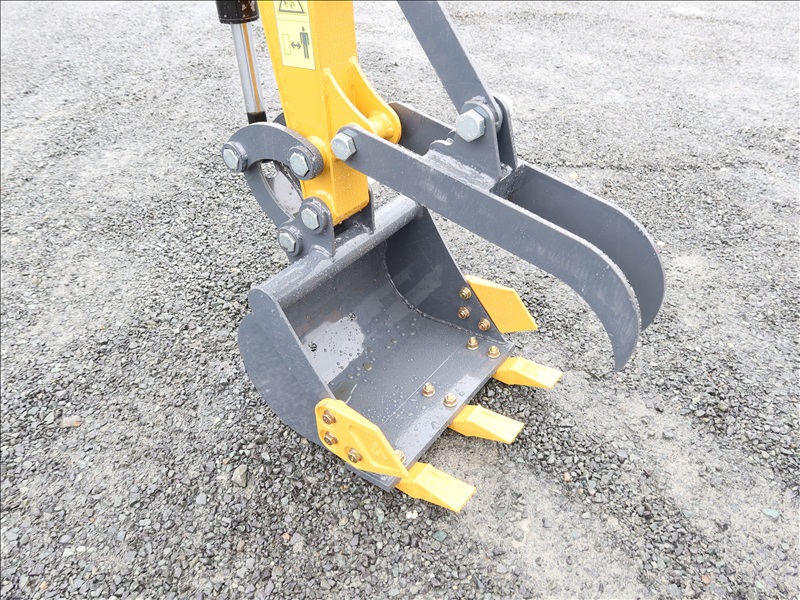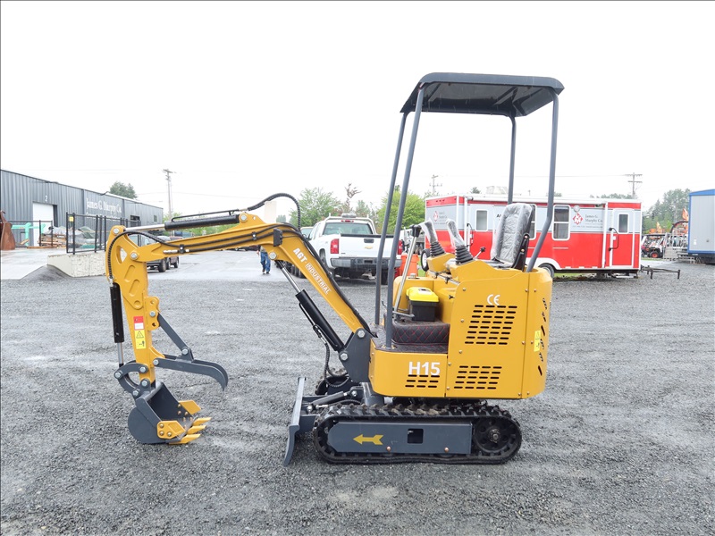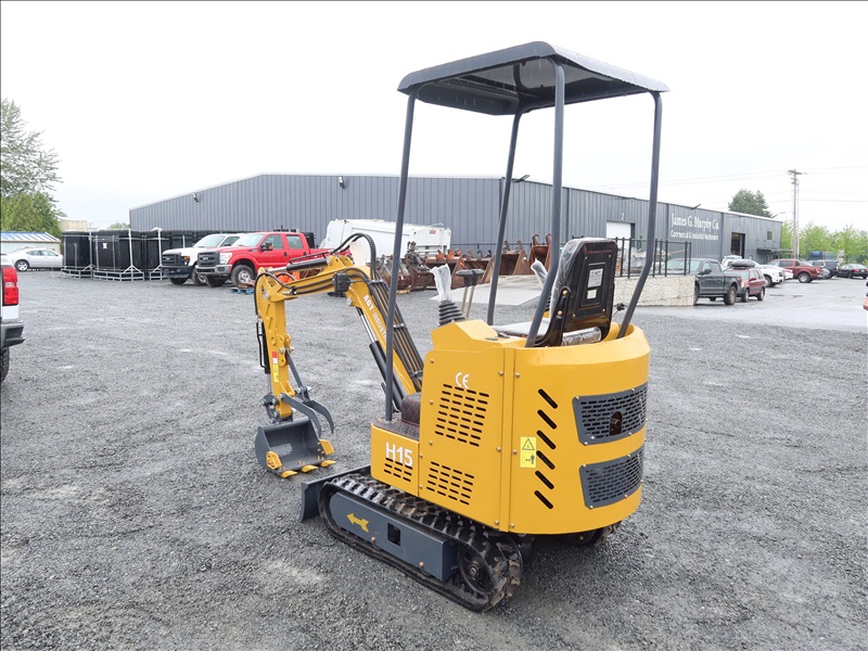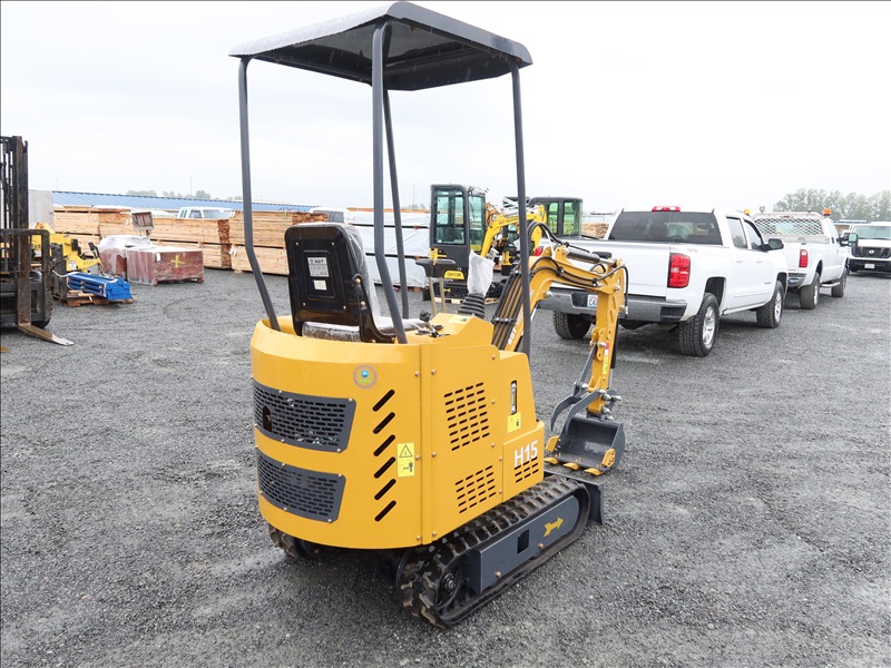 MINI EXCAVATOR, 15" BUCKET, THUMB, AUX HYD, BLADE, RUBBER TRACKS, CANOPY