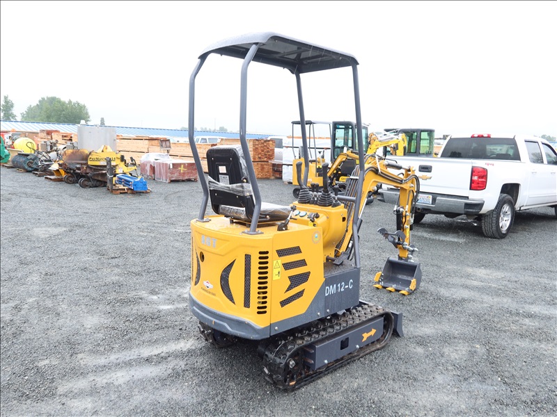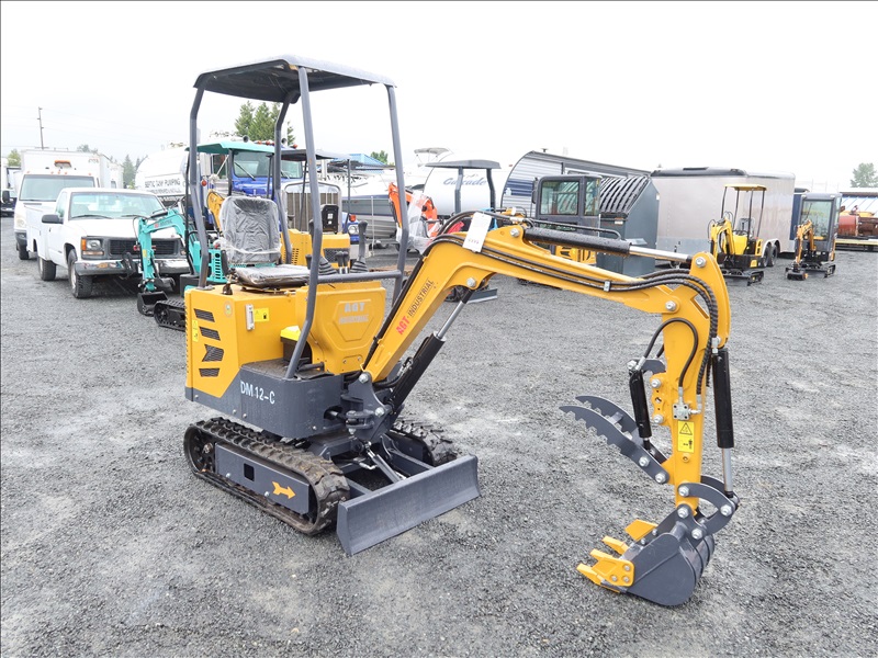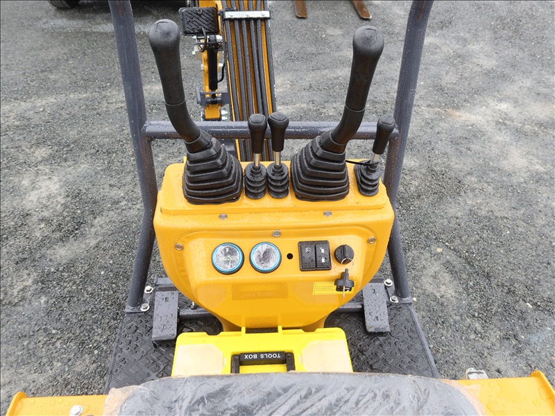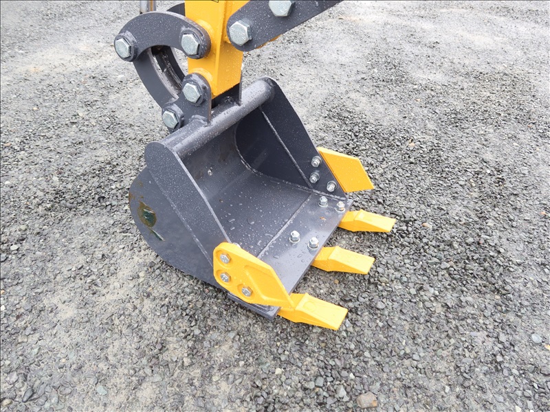 MINI EXCAVATOR, 13.5 HP BRIGGS & STRATTON 1 CYL GAS, SWING BOOM, 14" BUCKET, HYD THUMB, AUX HYD, BLADE, RUBBER TRACKS, CANOPY