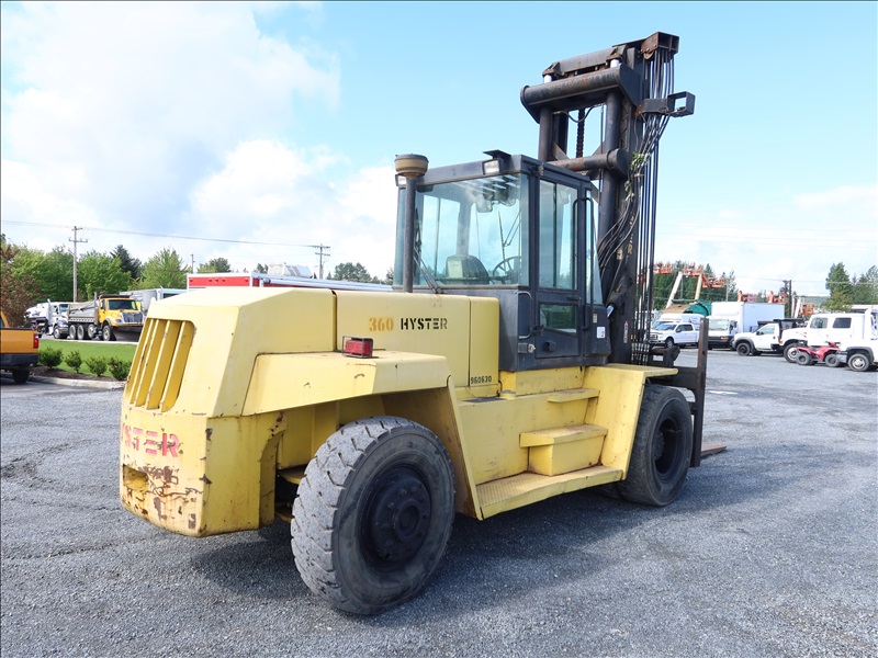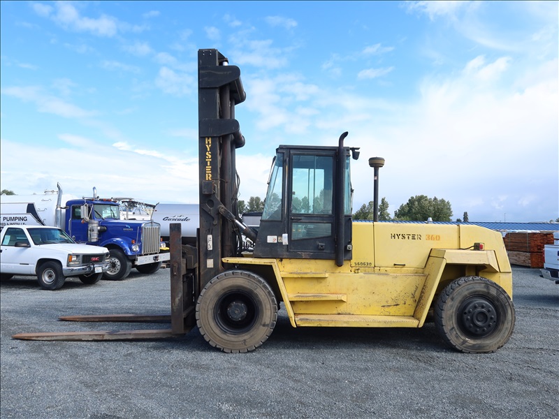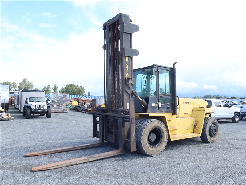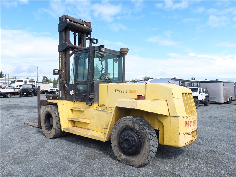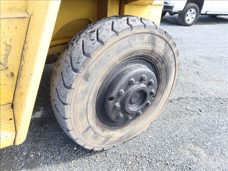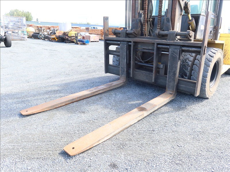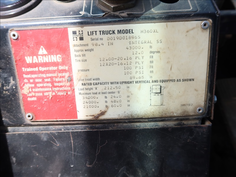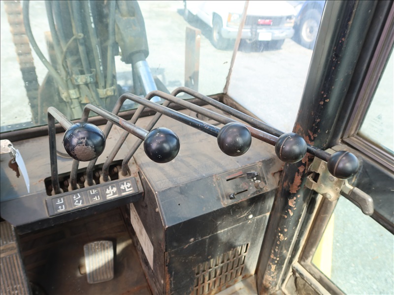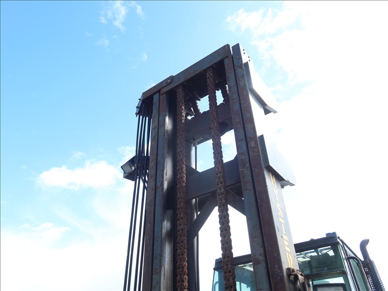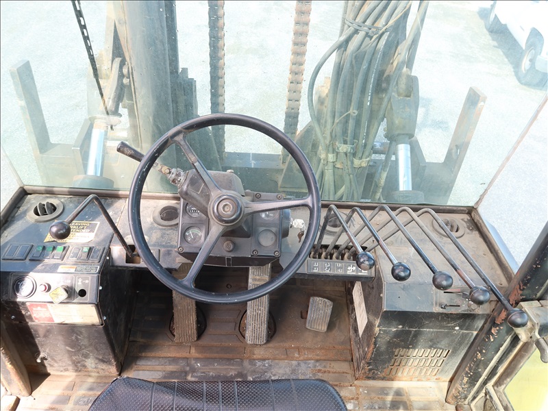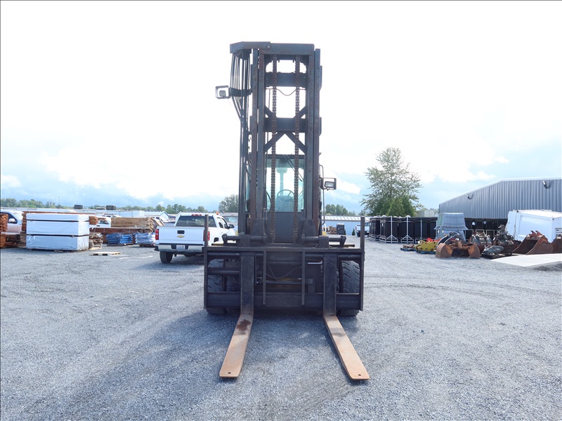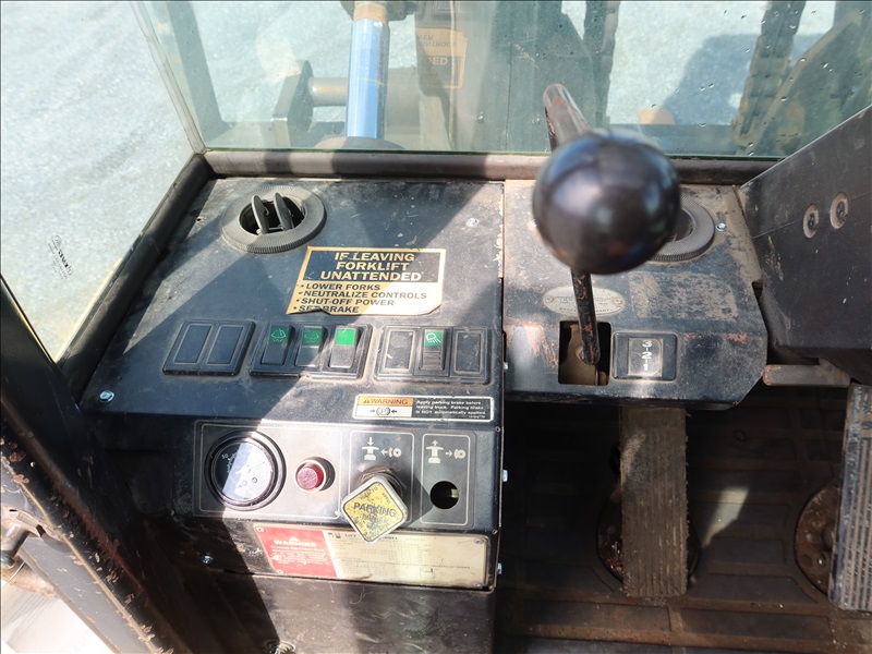 34,000 LB DUAL PNEUMATIC TIRE FORKLIFT, 212.5" FORK HEIGHT, 2-STAGE MAST, SIDE SHIFT, FORK POSITIONERS, PERKINS 6 CYL DIESEL, CAB, A/B