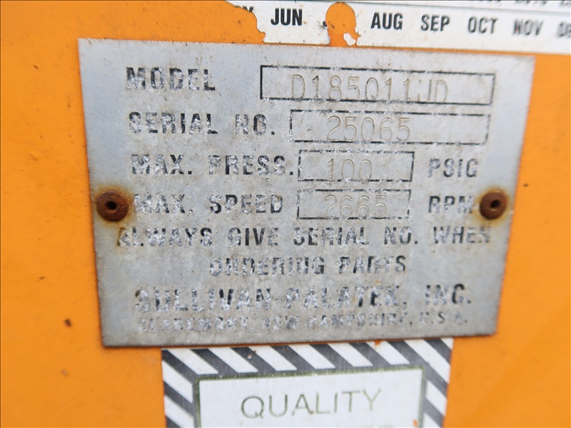 S/A, 185 CFM TRAILER MOUNTED AIR COMPRESSOR, JOHN DEERE 4 CYL DIESEL, HOUR METER READS: 4,087