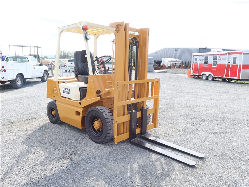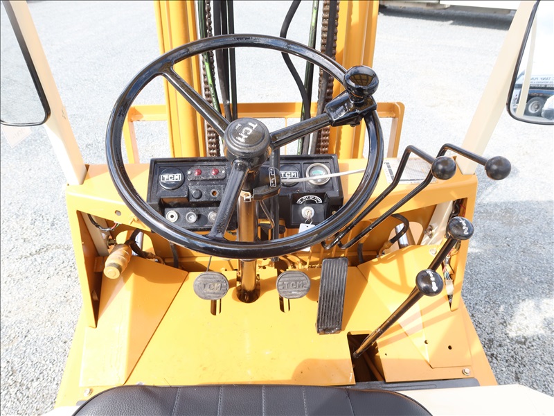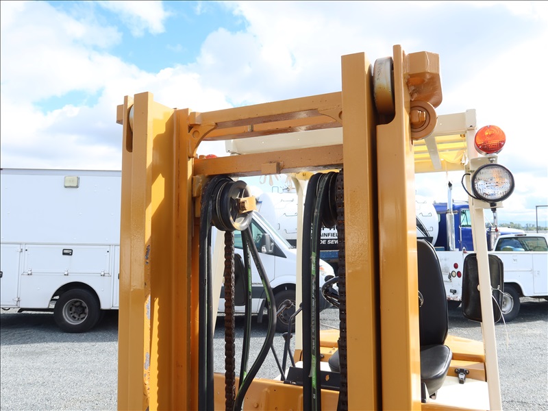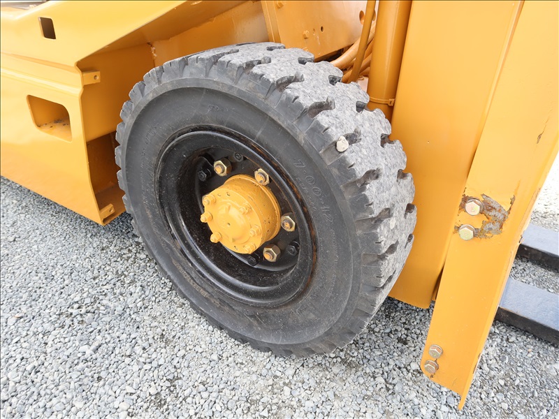 5,000 LB SOLID TIRE FORKLIFT, 118" FORK HEIGHT, 2-STAGE MAST, ISUZU 4 CYL DIESEL (NO HOUR METER)