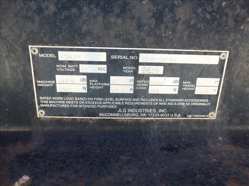 4X4 ROUGH TERRAIN SCISSOR LIFT, 43' PLATFORM HEIGHT, 1,500 LB RATED WORK LOAD, A/C RECEPTACLE AT PLATFORM, 24.8 HP KUBOTA 1.26L