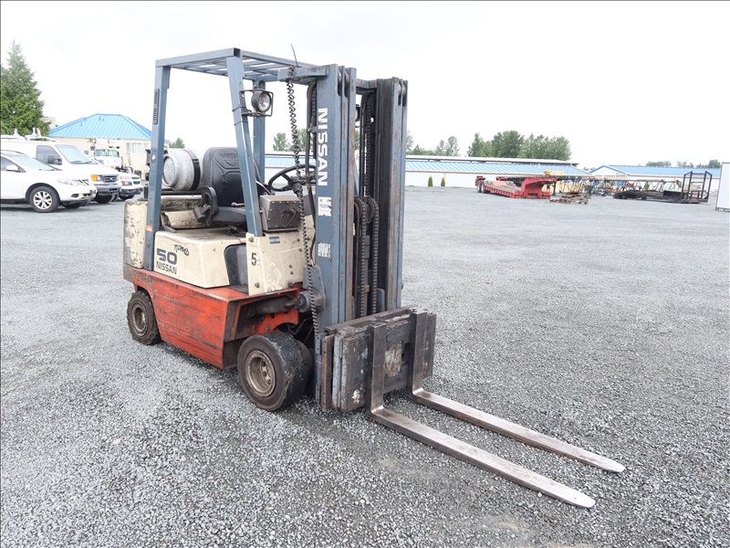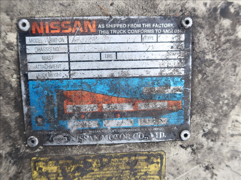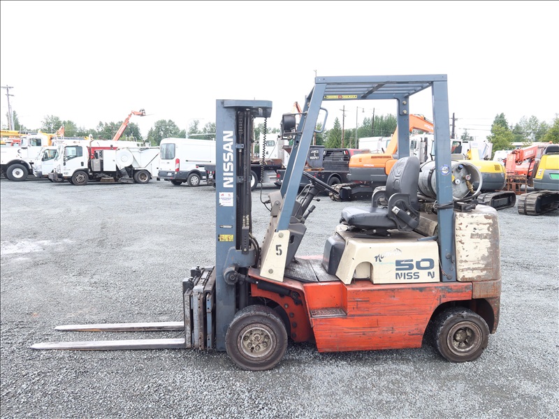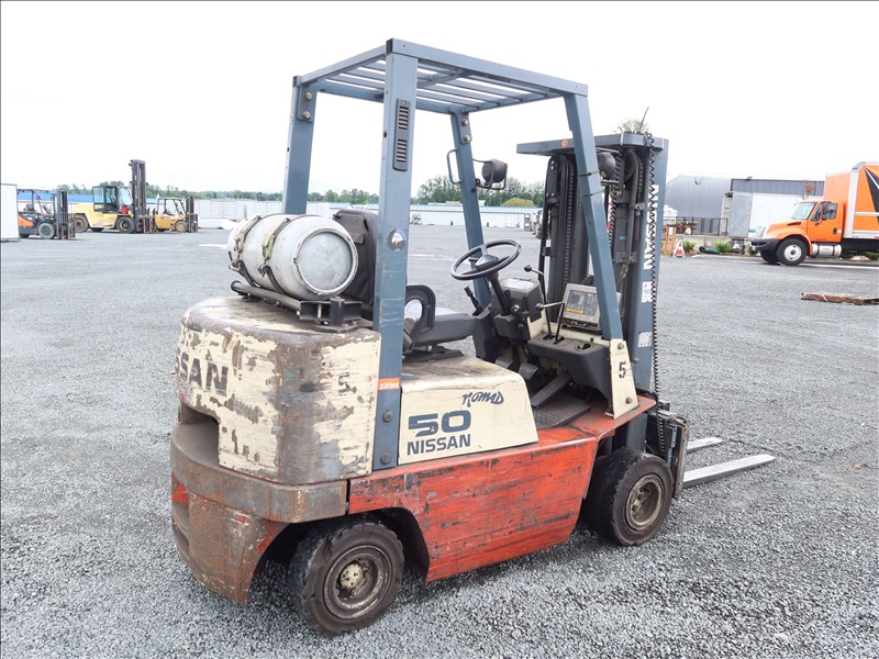4,500 LB HRT FORKLIFT, 169" FORK HEIGHT, 3-STAGE MAST, SIDE SHIFT, 4 CYL LPG
